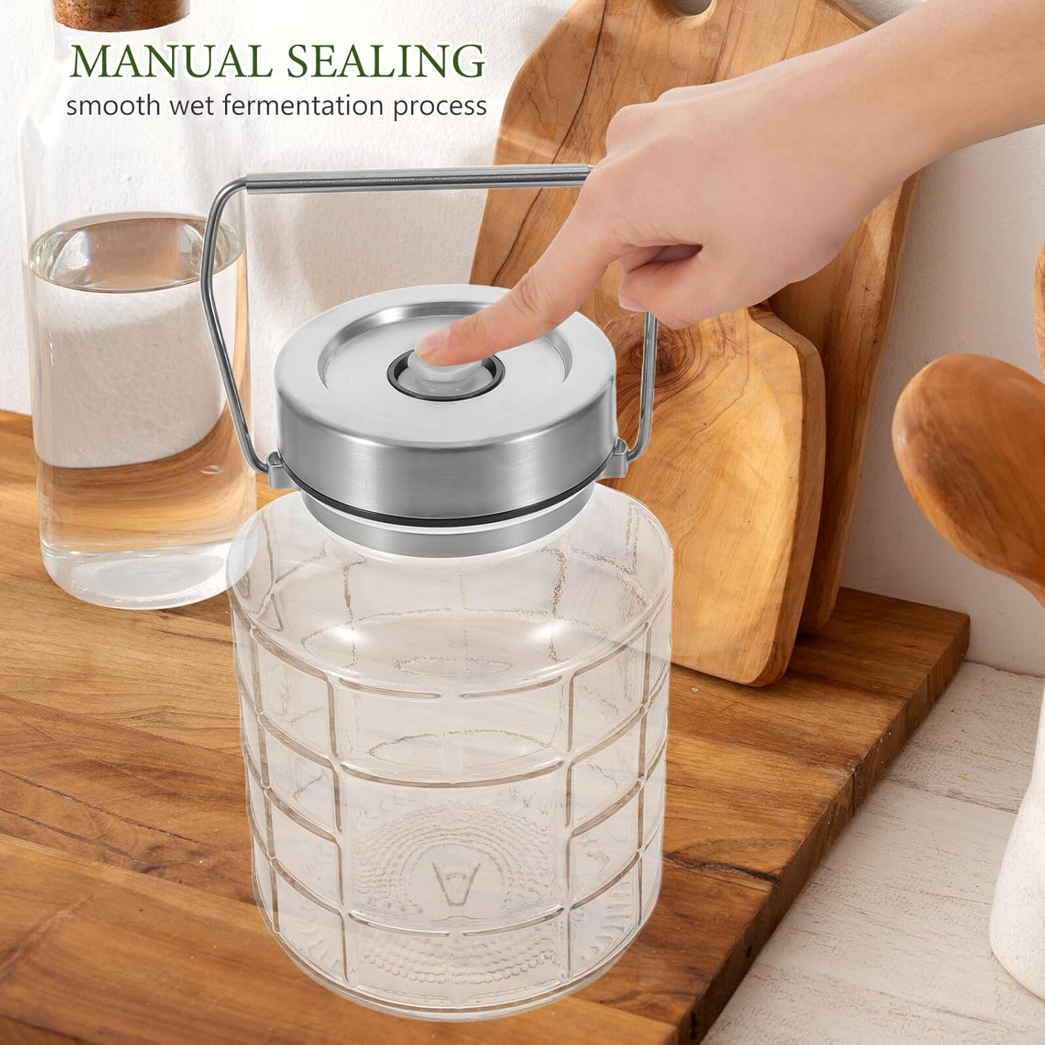 Package List 1 x fermentation jar Features -Automatic pressure control: the household fermenting jar utilizes a valve that maintains optimal pressure levels, ensuring the safety and effectiveness of fermentation in glass storage containers for kitchen airtight glass jars -Wide opening for ease: the fermenting pickle jar comes with a broad mouth, simplifying the addition and removal of ingredients, ideal for kitchen food storage container tasks and facilitating thorough cleaning transparent glass sealed jar -Material: designed as a glass food container, the airtight jars enable extended preservation of sweet wine and fermented vegetables without taste alteration -Size:20.00X13.00X13.00cm/7.86X5.11X5.11in -Material:Glass, stainless steel -Product Info: Fermentation bottle -Safe airtight seal: utilizing a sealing pickle container system, this glass mason jar blocks air and , safeguarding the flavor and purity of your food storage jar contents glass containers -Color:Transparent -Decorative utility: the glass jar with lid offers a sophisticated transparent look, allowing users to showcase kitchen storage jars or use as a decorative household pickling jar centerpiece storage jars with airtight lidsGoods Informationkimchi storage container Enjoy fermentation with this glass sealed jar equipped with an automatic exhaust valve.glass storage jars The airtight jars mechanism creates a stable environment, boosting your fermenting success.sealing pickle container The appearance allows these glass storage containers to suit any decor, for making, displaying, or storing pickles, rice wine, and preserved foods at home
