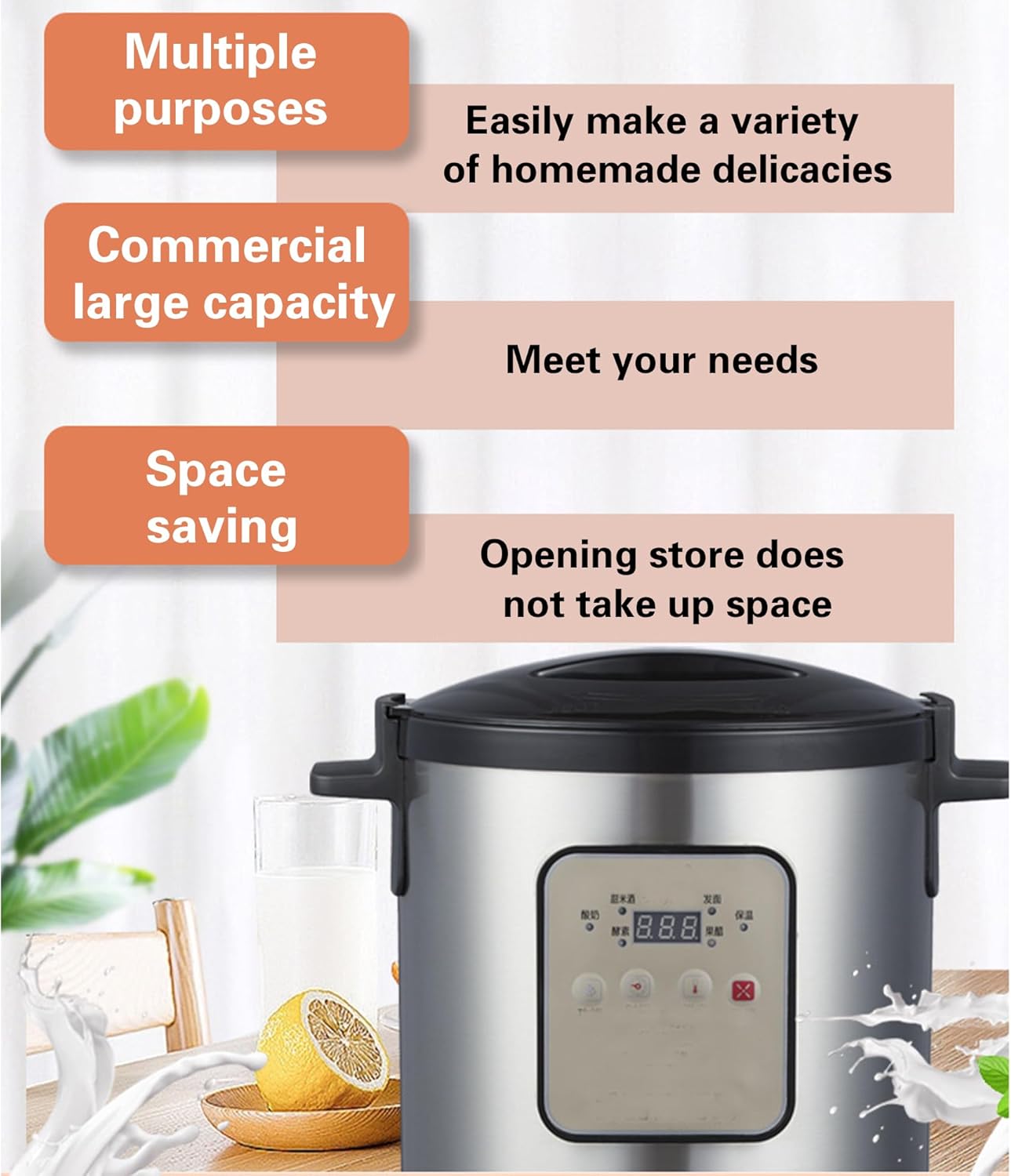 With a totally automatic control system, this fermenter simulates a traditional hand fermented atmosphere, causing every drop of yogurt and rice wine to come alive over time, providing an incomparable enjoyment to the taste papillae of the tasters.First quality materials guarantee lasting use and the large capacity of 2.64/3.9 gallons will meet the needs of your home or commercial.With this product you can make and enjoy fermented foods rich in active nutrients and full of flavor.Specification:Style: modernForm: RoundCapacity: 12L/18L (2.64/3.9 gallons)Voltage: 110V/220VPower classification: 90W-110WProduct size: 12l: 33*26*51cm (13*10*20in)18L: 36.5*30*53 cm (14*12*21 inches)ApplicationIt is suitable for restaurants, pastries, food stores, homes, stalls and other places.It allows yogurt fermentation, sweet rice wine, fruit vinegar, dough, natto, etc.It is also suitable for hotels, restaurants, pastries, edible stores, home furniture and stalls.1. Due to the difference between different monitors, it is possible that the image does not reflect the real color of the article.Please consider this before buying.2. Allow a 1-3 cm difference due to manual measurement.