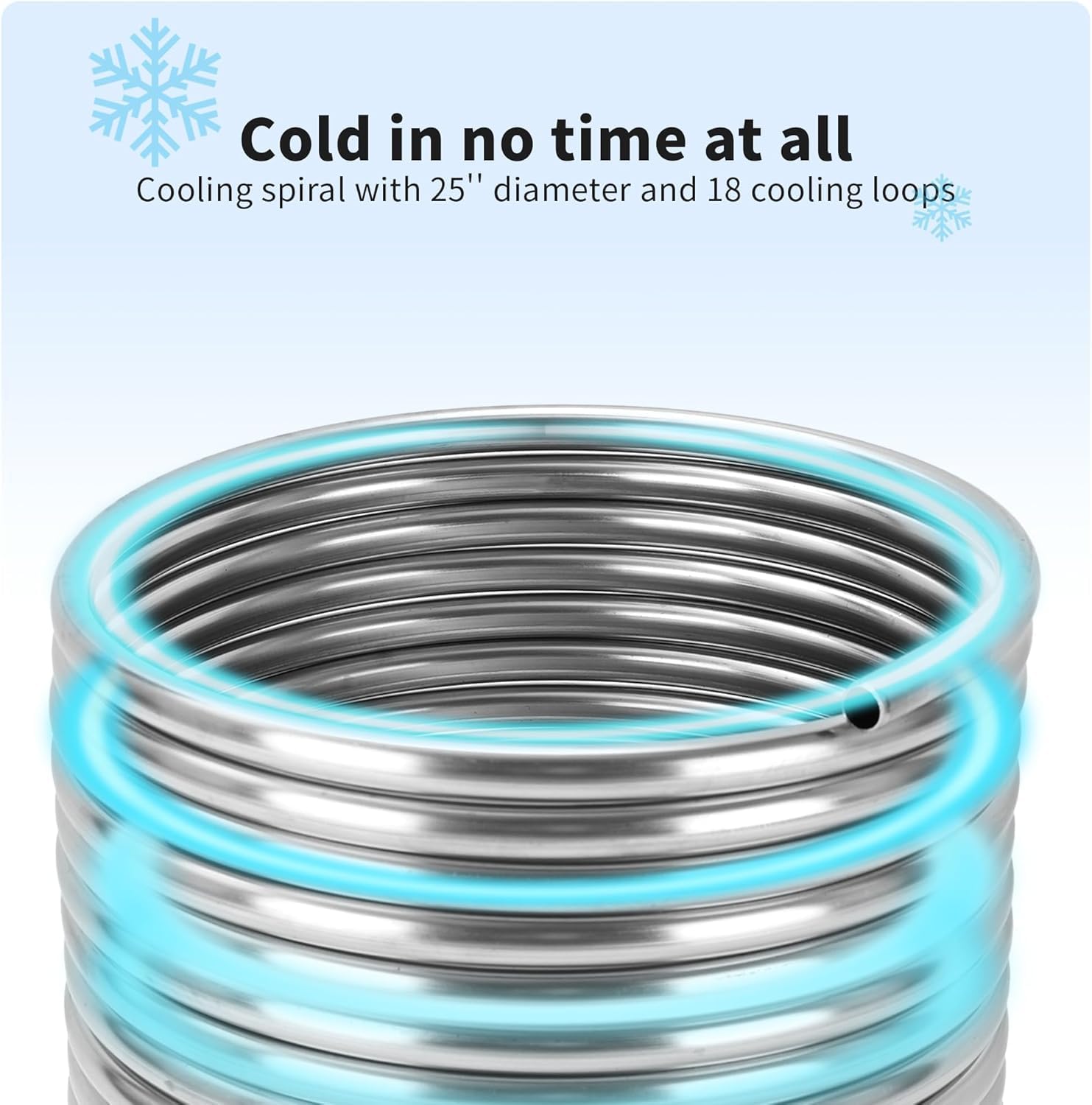 Stainless steel is a dependable material, boasting corrosion resistance that simplifies both maintenance and installation. It strictly meets the specifications of ASTM A269. Effortless to clean: Its high rigidity ensures a lifetime of use with proper care, making it a convenient choice for homebrewers. Any leftover debris that might compromise beer quality can be easily washed away. Premium for chilling: The stainless steel coil for wort chilling enhances the clarity of the final beer by facilitating the "cold break". It can cool the wort to pitching temperatures in as little as 15 minutes, saving valuable time on brew day and letting homebrewers proceed to the next step of the brewing process more swiftly. Versatile applications: Widely used in wort chillers, water chillers for ice baths, and stainless steel heat exchange coils. It’s also ideal for various DIY home projects, such as DIY immersion tubing chillers and DIY jockey boxes.