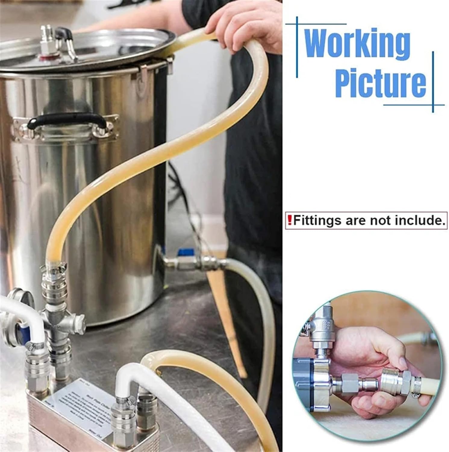 20/30/40 Plates Heat Exchanger Wort Chiller, Stainless Steel Counter Flow Chiller Bar Beer Cooler Tools20 Plates Chiller: Dimension: 190mm x 72mm x 65mm Garden hose thread : 1/2" Male NPT fitting30 Plates Chiller: Dimension: 190mm x 72mm x 87mm Garden hose thread : 3/4" Male NPT fitting 30 Plates Chiller(Inner Thread)Garden hose thread: 1/2'' NPT40 Plates Chiller:Dimension: 190mm x 72mm x 112mmWater side out/in: 3/4" NPT Theaded Wort side out/in: 1/2" NPT ThreadedPrincipleCounterflow chillers are a tube-inside-a-tube design and work by running hot wort from the boil kettle through the inner tube while cold water flows in the opposite direction through the outer tube.