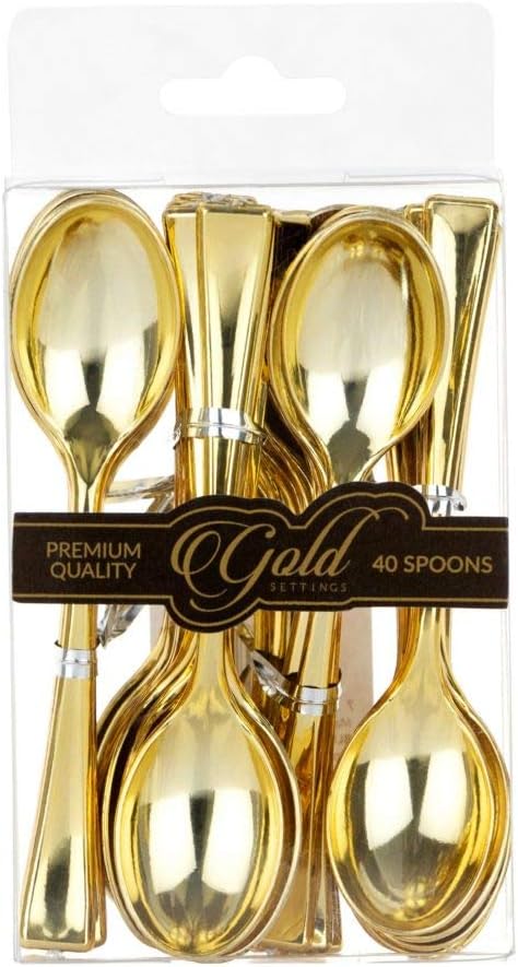 Mini Gold Spoons delivers a practical, polished solution for high-volume dining and entertaining. Each case includes 40 spoons; 24 packs per case for easy setup across parties, weddings, catered events, buffets, office functions, and everyday foodservice. The disposable design helps reduce cleanup time while maintaining a coordinated presentation. Whether you are stocking event supplies, preparing takeout service, or setting large tables for guests, this bulk flatware option offers convenience, value, and dependable performance.