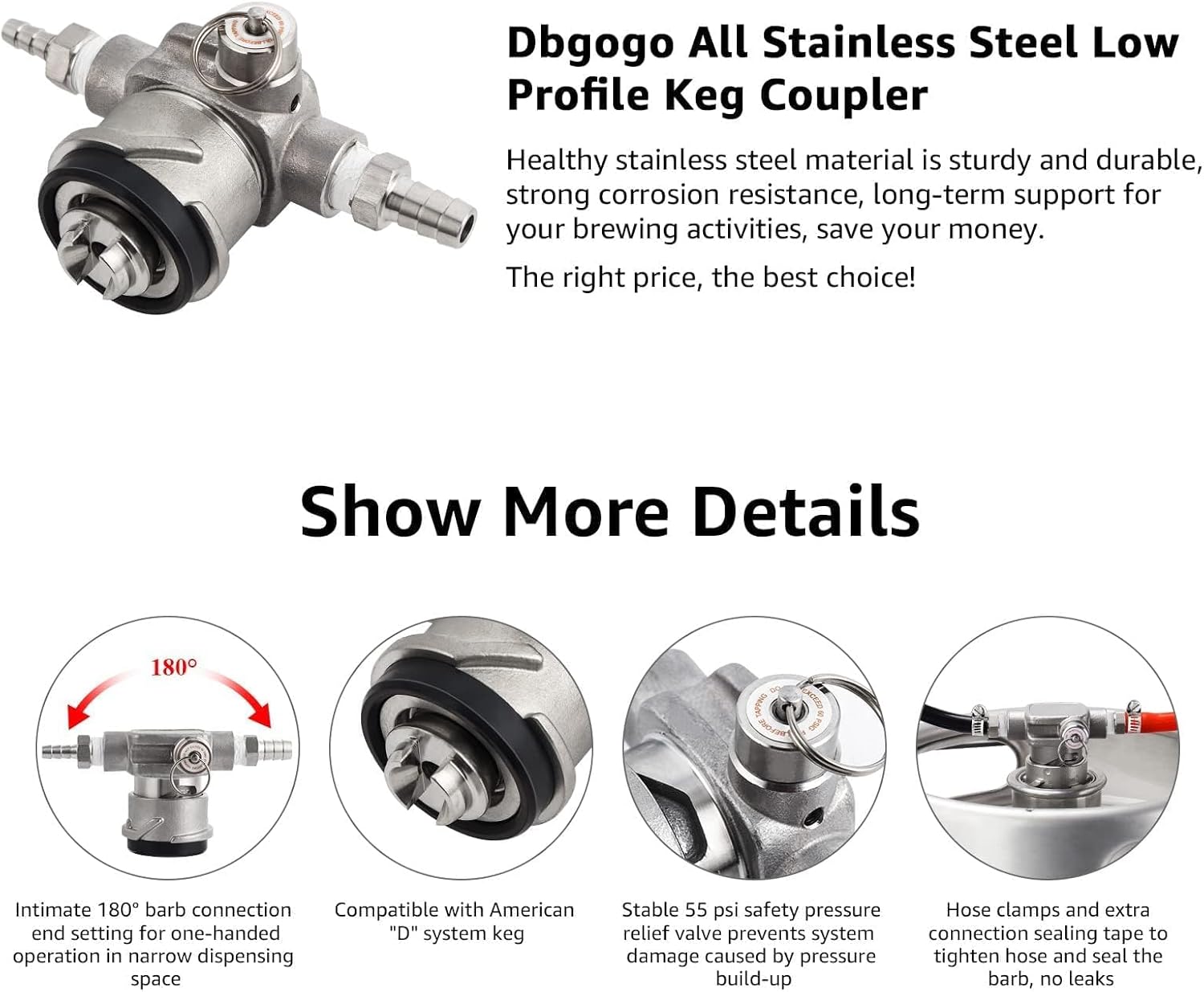 • Keep Safety and Lower Cost: This beer keg coupler is designed with a pressure relief valve to release excess pressure automatically at 55 psi keeping user safe. it is all made of stainless steel, the quality is as great as the one you buy at local homebrew shops, but you will save money than local stores to get the same thing, stainless will keep the best taste of your beverage, the healthy drinking is "on-the-go"!