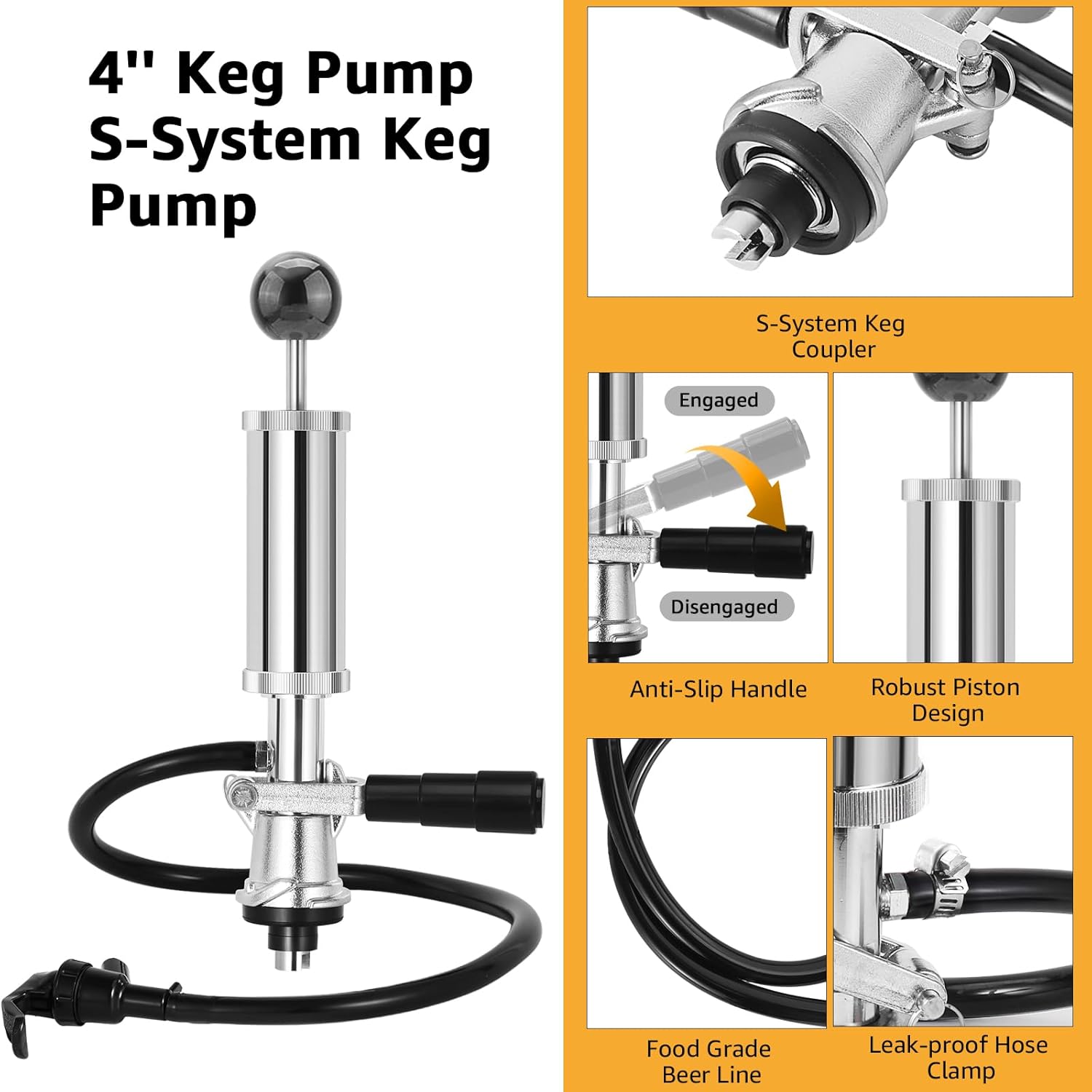 • 🍺【A STEADY FLOW OF BEER】The MRbrew S-System Keg Pump is designed with a durable gas spring washer that ensures stable air pressure, 2 hose clamp that prevents any leaks, so you can enjoy your beer without any interruptions.