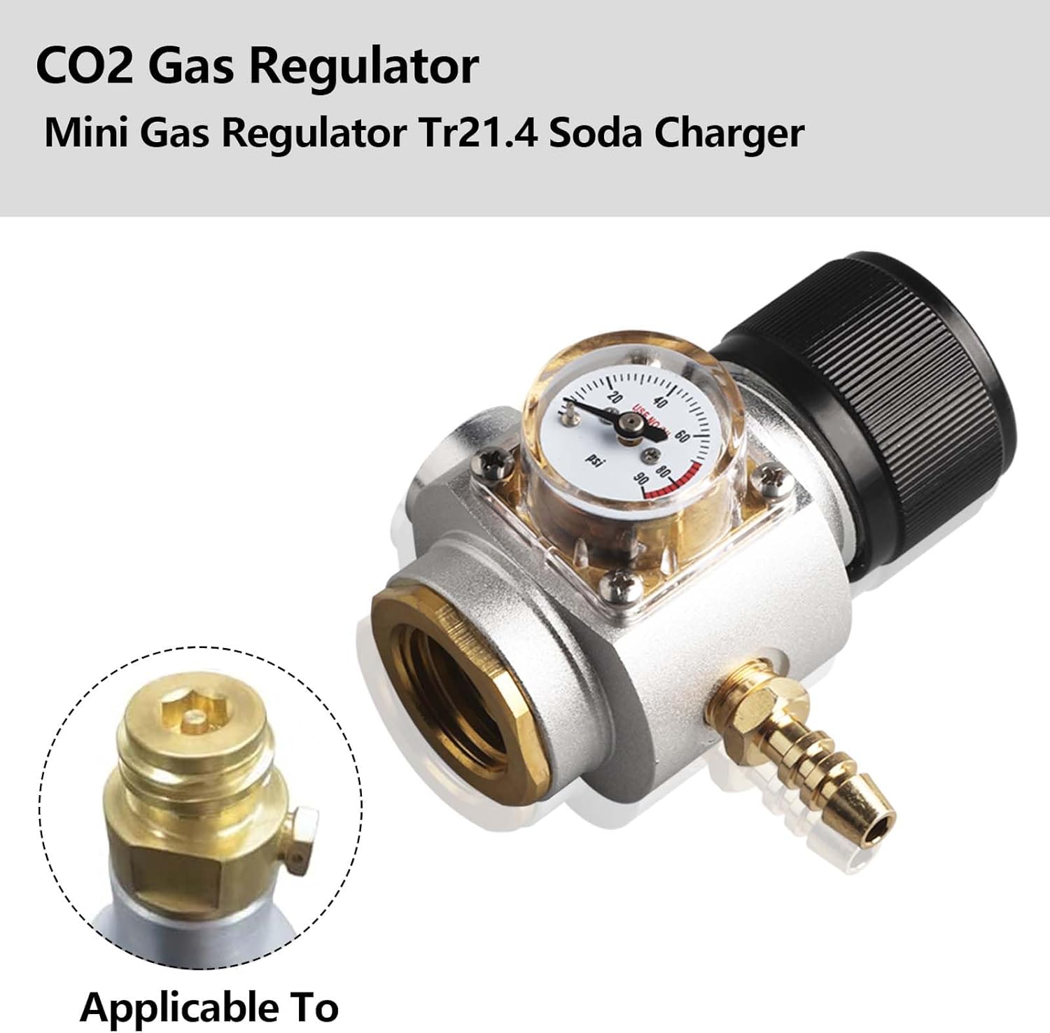 【High Quality 】The Soda Keg Charger is made of high quality aluminum material, strong and durable, with dial and balloon lock, this kit is practical accessory for soda beer keg brewing.【Soda Cartridge】This Soda gas regulator is easy to insert the Soda cartridge, set the dial and connect to your keg,【Suitable for】This Mini Keg Charger is more precise than all other mini regulators and accepts all sizes of Soda cartridges, 0-30 PSI adjustment range, 0-25 range allows for more accurate dispensing pressure adjustment,The Outlet Barb is 8mm, usually connect 5/16" Beer Gas Line【Portable Size】This Soda Gas Regulator is small and portable, keeping dispensing pressure in your keg when you're away from home without bulky Soda gear;Portable size allows you to bring to any outdoor barbeque, party, or get together;【Quality Gurantee】 Your satisfaction is our greatest pursuit, we are committed to providing customers with a pleasant shopping experience and satisfactory after-sales service. If you have any questions, please feel free to contact us. We will give you a satisfactory answer within 24 hours