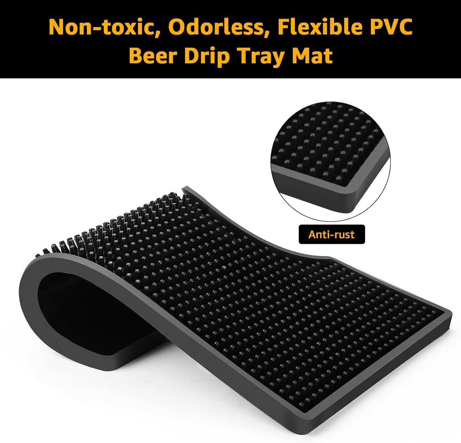 The hgkeke adjustable beer tower features a dual-tap design that allows for simultaneous connection of two different flavors of wine or beverages. For example, one tap can dispense rich and creamy stout beer while the other serves refreshing and palatable craft lager. Eliminating the need for frequent keg changes, it not only saves bar counter space but also meets the demand for simultaneous serving to multiple people, making it suitable for high-traffic commercial scenarios and the diverse flavor needs of family gatherings.The core advantage of the beer tower lies in its adjustable dispensing flow rate and foam fineness. Equipped with a flow control switch at the tap end, it allows users to freely adjust the dispensing speed, preventing excessive foam caused by overly fast flow and avoiding wine oxidation due to excessively slow flow.Easy to Clean & Versatile Appliances: Beer drip mat, direct use out of the box, easy to wash in the sink and dishwasher, or you can just put it in the warm running water. Versatile appliances beer drip tray mat save kitchen counter and Kegerator space while avoiding beer spills or beer drips. The beer drip tray mat also can serve as a cup drying mat to hold washed beer cups get air dry. The beer drip tray mat is a key part of keeping the Kegerator counter and countertop clean and tidy