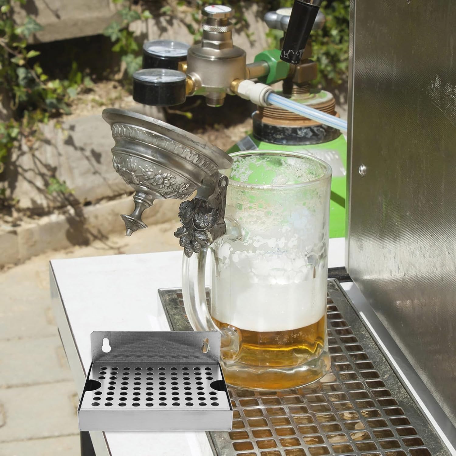 Description Crafted from stainless steel, this beer dispenser drip pan make sure longevity and resists corrosion in homebrew or bar environments. Its sleek modern look perfectly matches various interiors, acting as a wall mounted keg drip tray that keeps countertops dry. The drip pan for drink dispenser efficiently gathers beer spills, providing a tidy and convenient drinking setup. Features -Color:Silver -Material:Stainless steel -Size:15.00X11.50X6.50cm/5.89X4.52X2.55in -stable construction: made from great stainless steel, this beer dispenser drip pan resists rust and corrosion, ensuring longterm performance in busy homebrew or commercial settings -Efficient spill collection: the precision design of the kegging drip tray effectively catches drip and residue from beer pouring, keeping your countertop clean and tidy at all times -Universal compatibility: suitable for kegerator drip trays and various drink dispensers, this tray adapts seamlessly, making it an ideal upgrade for any draft beer setup or homebrew system -Modern aesthetics: with its simple silver drinks tray style, this wall mounted keg drip tray blends effortlessly into contemporary kitchens or bar countertops, elevating the space’s appeal -Easy cleaning & maintenance: the removable grill drip tray makes cleanup quick; simply detach the stainless steel draft beer tray and rinse for a spotless finish every time