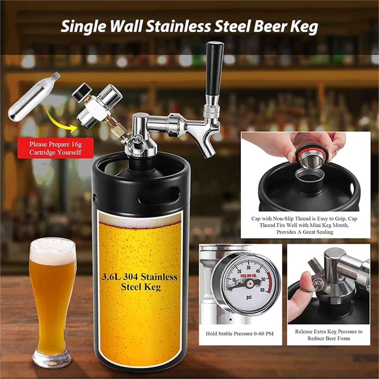 Stainless Steel3.6L(128OZ) Growler Tap System Mini Keg Beer Faucet Dispenser Pressurized Beer Keg With Co2 Regulator Keep CarbonationYou Will Get ?1*3.6L beer keg 1* Keg Spear1*Co2 Regulator 1*Beer Tap==========Product Type : KegsMaterial : Stainless Steel
