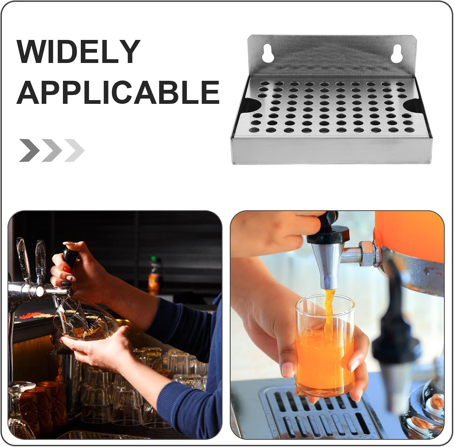 Description Keep your bar or kitchen spotless by installing this wall mounted removable tray, expertly designed as a draft beer stainless steel pan. The silver drinks tray’s precise drainage system collects every drop from glassware and beer tap drip tray connections, eliminating wet surfaces and supporting a cleaner serving environment for homebrew kegging drip tray enthusiasts and professionals alike. Features -Color:Silver -Material:Stainless steel -Size:15.00X11.50X6.50cm/5.89X4.52X2.55in -Smart spill management: the wall mounted removable tray is engineered to catch drips from beer machines and taps, helping you maintain a clean and dry worktop every time you pour -Reliable material: constructed as a sturdy stainless steel beer drip pan, this homebrew stainless drip tray is stable and built to last through years of kegging and dispensing -Space-saving design: thanks to the wall mounted draft tray and wall mount stainless drip pan features, you can maximize counter space and create a clutter-free station for drinks -Versatile convenience: compatible as a drip tray for beer machine or homebrew keg drip tray, this tray adapts for use with various machines, making it an essential tool for any setup -Stylish utility: the draft beer tray with grill and stainless steel beer pan design combines functionality and style, looking great anywhere from a kitchen to a commercial bar