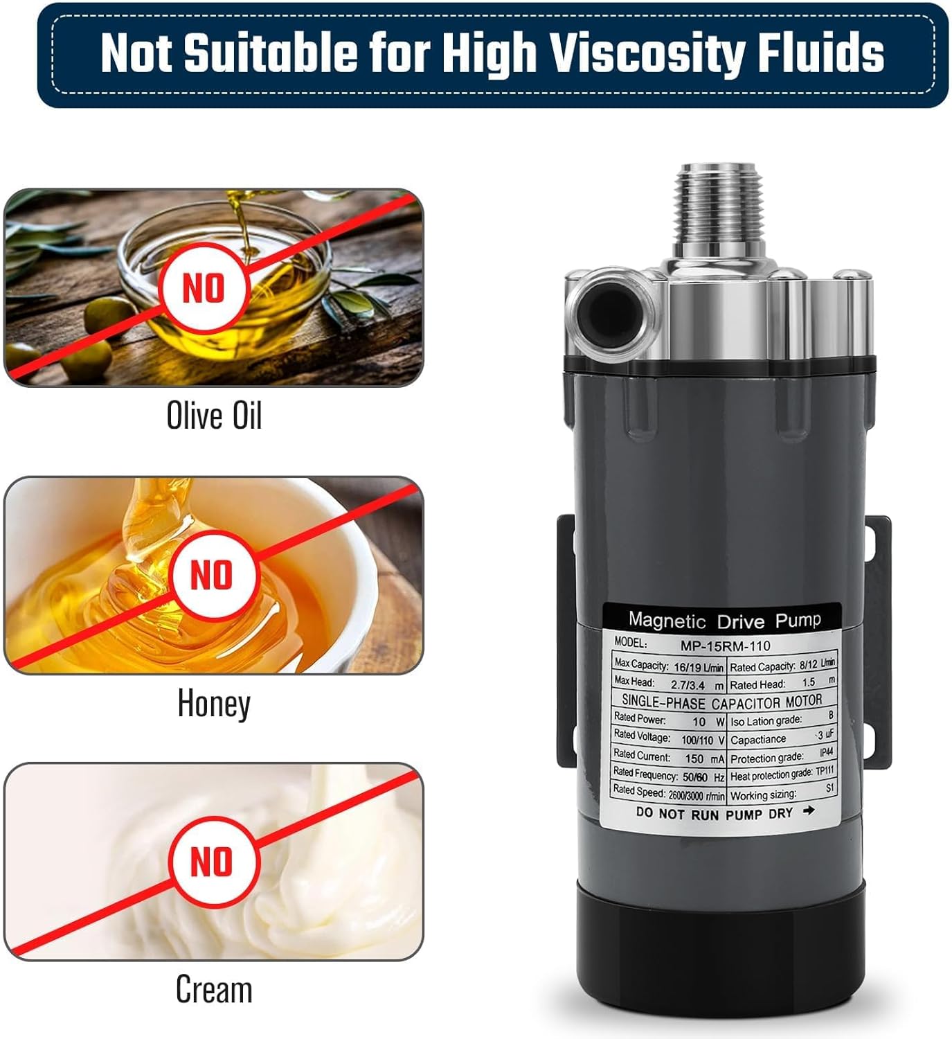 Wort Pump for Brewing, Magnetic Drive Beer Pump with Inline Switch