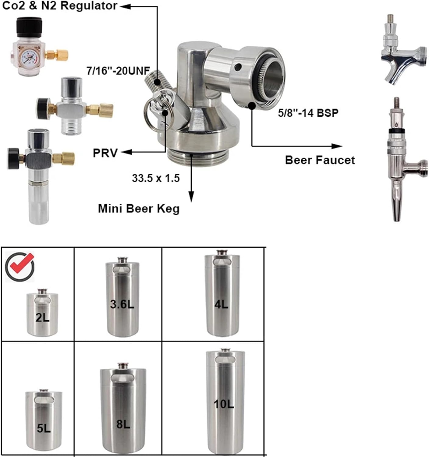 TubesStainless Mini Beer Keg Growler Spear 5/8"BSPT Fit Standard Stout Forward Sealing Beer Tap