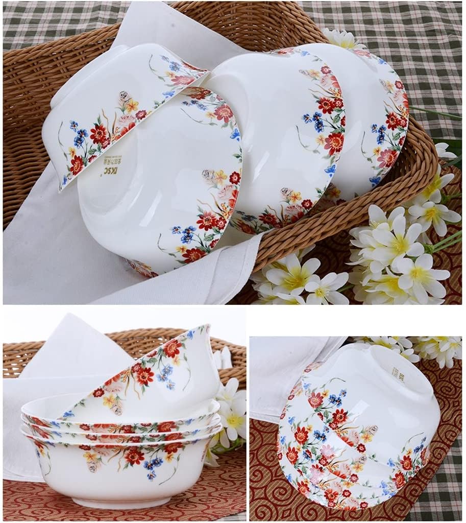 Feature:Made of Bone China material, easy to clean.The size for you, so they always fit all your favorite snacks and foods. and not afraid of damage, Suitable for cold or hot meals, cereals, fruits, etc.Suitable for buffet or restaurant, enjoy all your favorite dishes.Material: Bone China Size: diameter 15.2CM, height 7.8 CMColor: Rose blossomPacking list:4 * bowlnotes:1. Due to manual measurement, please allow an error of 1-2cm. thank you for understanding.2. The monitor is not calibrated, and the color of the object shown in the photo may be slightly different from the actual product. Please refer to the actual product.Whether it's a comfortable family breakfast or a lively gathering with friends, our fashionable cutlery collection can enhance your dining experience in any occasion