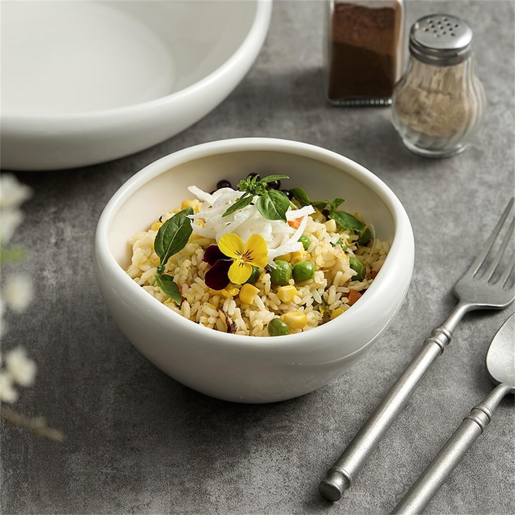 The porcelain is tough and heat resistant without cracking, and can be used in microwave, oven and other appliances.The surface has a sculpted texture with a soft sheen that makes your food look more delicious.Made of ceramic, not hot to hold on the end, the bowl bottom raised design, hold steady and not easy to slip your hand.The glazed surface is glossy and can be cleaned with light water for a beautiful display in your cabinet.This soup bowl can hold salads, vegetables, fruits, mixed dressings and your favorite foods.Material: porcelain.Shape: round.Size: 14*7CM.Package content: 1*soup bowl (other display items are not included).1 Color may differ slightly from the image due to differences in light and screen.2. Due to the manual measurement, please allow a 1-3 cm difference.Whether it's a comfortable family breakfast or a lively gathering with friends, our fashionable cutlery collection can enhance your dining experience in any occasion