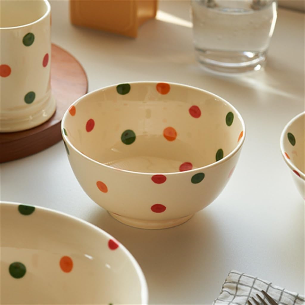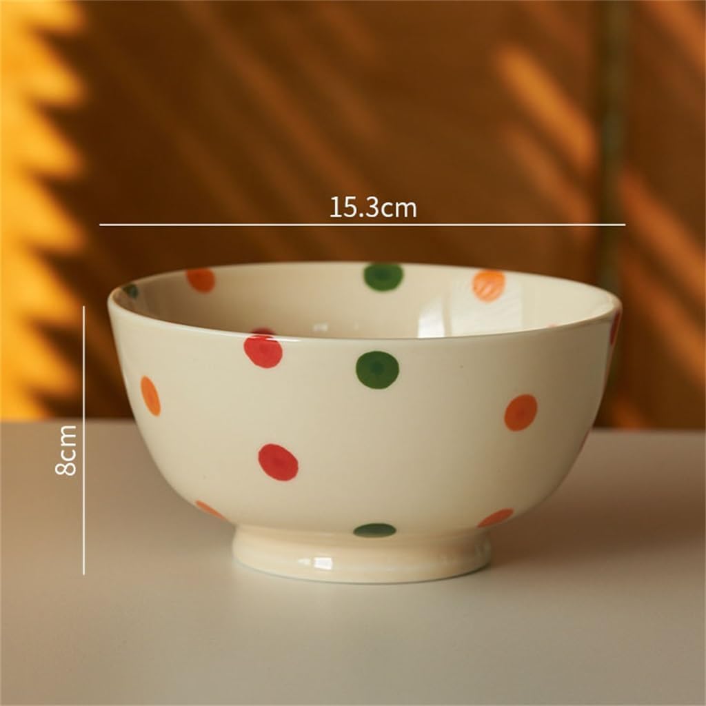 The porcelain is tough and heat resistant without cracking, and can be used in microwave, oven and other appliances.The surface has a sculpted texture with a soft sheen that makes your food look more delicious.Made of ceramic, not hot to hold on the end, the bowl bottom raised design, hold steady and not easy to slip your hand.The glazed surface is glossy and can be cleaned with light water for a beautiful display in your cabinet.This soup bowl can hold salads, vegetables, fruits, mixed dressings and your favorite foods.Material: porcelain.Shape: round.Size: 15.3*8CM.Package content: 1*soup bowl (other display items are not included).1 Color may differ slightly from the image due to differences in light and screen.2. Due to the manual measurement, please allow a 1-3 cm difference.Whether it's a comfortable family breakfast or a lively gathering with friends, our fashionable cutlery collection can enhance your dining experience in any occasion