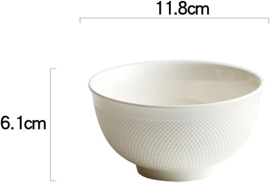 The porcelain is tough and heat resistant without cracking, and can be used in microwave, oven and other appliances.The surface has a sculpted texture with a soft sheen that makes your food look more delicious.Made of ceramic, not hot to hold on the end, the bowl bottom raised design, hold steady and not easy to slip your hand.The glazed surface is glossy and can be cleaned with light water for a beautiful display in your cabinet.This soup bowl can hold salads, vegetables, fruits, mixed dressings and your favorite foods.Material: porcelain.Shape: round.Size: 11.8*6.1CM.Package content: 1*soup bowl (other display items are not included).1 Color may differ slightly from the image due to differences in light and screen.2. Due to the manual measurement, please allow a 1-3 cm difference.Whether it's a comfortable family breakfast or a lively gathering with friends, our fashionable cutlery collection can enhance your dining experience in any occasion