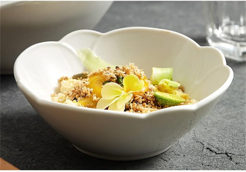 The porcelain is tough and heat resistant without cracking, and can be used in microwave, oven and other appliances.The surface has a sculpted texture with a soft sheen that makes your food look more delicious.Made of ceramic, not hot to hold on the end, the bowl bottom raised design, hold steady and not easy to slip your hand.The glazed surface is glossy and can be cleaned with light water for a beautiful display in your cabinet.This soup bowl can hold salads, vegetables, fruits, mixed dressings and your favorite foods.Material: porcelain.Shape: round.Size: 13.8*5CM.Package content: 1*soup bowl (other display items are not included).1 Color may differ slightly from the image due to differences in light and screen.2. Due to the manual measurement, please allow a 1-3 cm difference.Whether it's a comfortable family breakfast or a lively gathering with friends, our fashionable cutlery collection can enhance your dining experience in any occasion