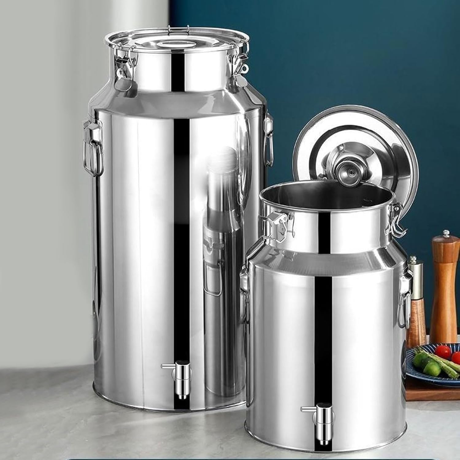 The milk barrel is made of high-end 201 stainless steel, which is resistant to corrosion, high temperature, and external pressure. Our milk can use to store milk, wine, food, oil, water, etc. It is widely used in kitchens, restaurants, restaurants, gatherings, camping, farms, and other venues. This milk bucket good sealing performance and portable handles allow for easy transportation. A simple structure and smooth surface allow for effortless cleaning. With it, you and your family can conveniently enjoy fresh milk.Specifications:Can Material: 201 stainless steelLid Gasket Material: SiliconeSize:14L,18L,24L,22L,28L,35L,42L,48L,58L,68L,64L,76L,88LPackage Content:1 x milk can We hope to give you a good shopping experience, any questions can be emailed and we will deal with them within 24 hours.