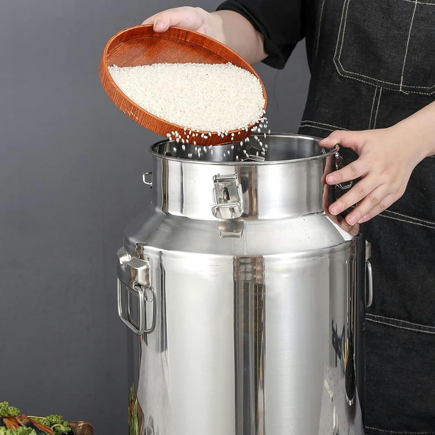 specification:Name: Stainless steel sealed barrelMaterial: 304 stainless steelCapacity: 18L, 28L, 35L, Function: store liquid/solid food, etc.Advantages: corrosion resistant, hygienic, not easy to rustfeature:Stainless steel milk jug.Made of stainless steel.Silicone sealing ring.Embedded silicone is more sealed.can add support at the bottom and top without having to be welded together.Package Contents:1 x stainless steel bucket
