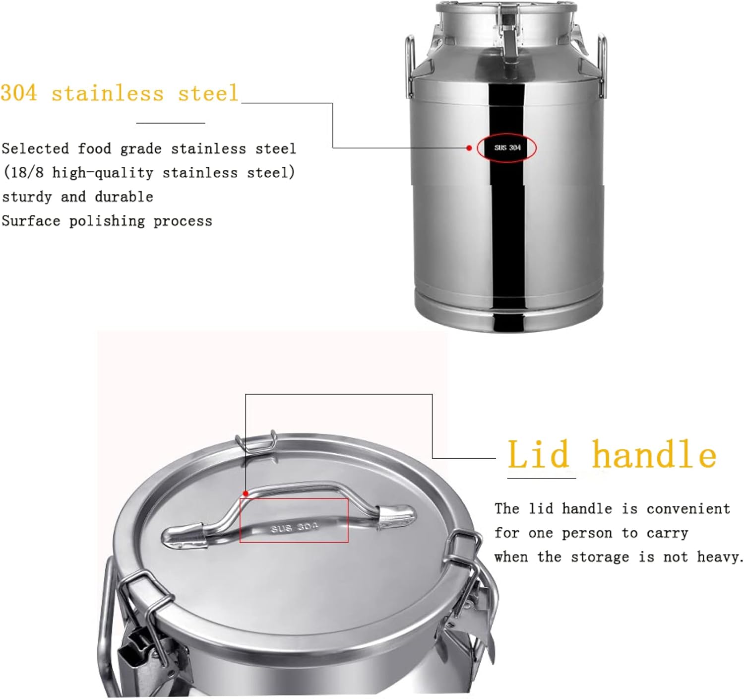 • ★ Wide Application: Easy to storage liquid product with not leaking liquid Products. Also with high heat resistance.Ideal option as storage for oil, ghee, milk, etc.Whether for home use or commercial use, our stainless steel milk bucket is your perfect option.