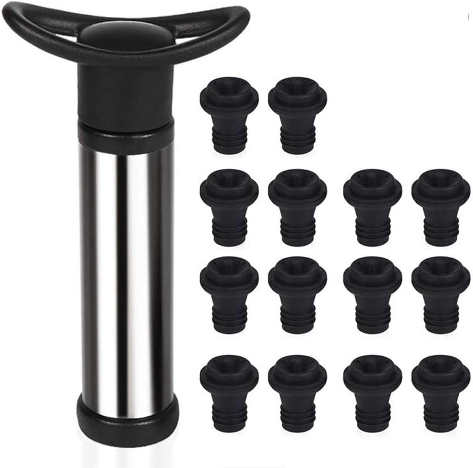 Beverages and other liquids fresh with the Beverage and Wine Stoppers.This silicone wine stopper is not only for wine, but also for beer, champagne, and soda bottles, etc.It makes your meal elegant and lovely, for children and couples.Insert the stopper into the bottle neck after drinking. No fear of leakage.No affect to wine or other liquid inside the bottle; convenient to wash in dish washer.Color: BlackMaterial: ABS plastic + PP plastic + Stainless steel + TPR rubber + SiliconeDimensions:Wine Pump: Handle width: 8.1cm(3.18in), pump width: 2.8cm(1.10in), height: 27.5cm(10.82in)Single Wine Stopper: W*H: 3.3*4.2cm(1.29*1.65in)9pcs: 1 x Wine pump, 8 x Wine stopper, 1 x Package bag15pcs 2: 1 x Wine pump, 14 x Wine stopper, 1 x Package bagNote:Please refer to the measurement. Tiny measuring error is allowable in normal range.There might be a little color difference due to the monitor, camera or other factors, please refer to the physical itemHighly practical with all-in-one bartending tools, it suits both beginners and seasoned mixologists, is easy to use and clean, for daily use, and also serves as gift for cocktail lovers, any home bar setup and drink-making experience