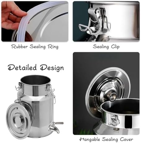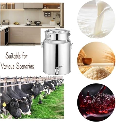 Introducing our premium stainless steel milk bucket with tap, expertly designed to maintain the quality and flavor of your liquids. This versatile milk can is perfect for transporting and storing milk, wine, and oil, making it an essential tool for farms, dairy processing plants, and home kitchens alike. Key features include a hands-free lid that can be conveniently hung, secure locking buckles that prevent leaks, and a robust handle for easy carrying. The practical ring allows for effortless hanging of the liquid extractor, while the wear-resistant bottom ensures durability and stability, even under heavy loads. Constructed from high-quality stainless steel 201, our milk bucket is available in various capacities to meet your specific needs: 5L, 7L, 9L, 14L, 18L, 22L, 24L, 28L, 35L, 42L, 48L, 58L, 68L, 76L, and 88L. This range enables you to choose the perfect size for your storage requirements, whether for daily use or special occasions. With its leak-proof design and airtight seal, our stainless steel milk bucket ensures that your liquids remain fresh and uncontaminated during transport. It is easy to clean and maintain, making it a practical addition to any kitchen or dairy operation. Each purchase includes one stainless steel milk can. Please be aware that slight measurement variations may occur due to manual processing. For any questions or assistance, feel free to reach out to us via email. Discover the perfect blend of functionality and style with our stainless steel milk bucket today!