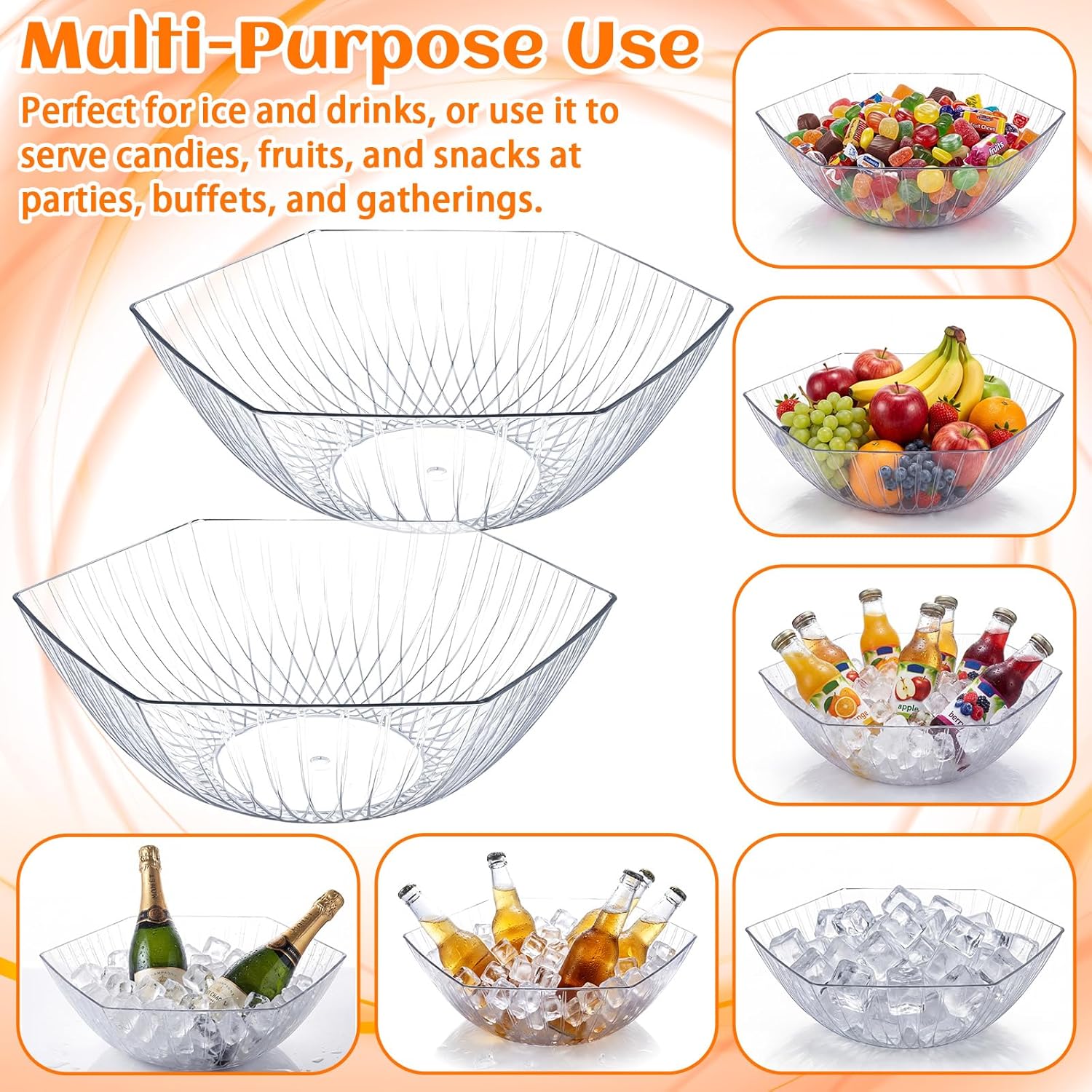 Features: Elevate your hosting game with these ice buckets for parties, designed to keep your drinks chilled and your events stylish. This set includes 6 pcs of 3L clear acrylic champagne buckets, perfect for holding multiple bottles of wine or beer alongside plenty of ice. Whether it's a backyard barbecue or an elegant cocktail night, these drink tubs for parties ensure your beverages stay refreshingly cool. Crafted from durable, safe PET, these ice buckets are built to last with a leak-proof design and convenient built-in handles. The transparent look adds a modern touch and allows you to monitor ice levels easily during your gatherings. Ideal for both indoor and outdoor use, they're a must-have addition to your bar supplies or buffet setup. Versatility is key with these large capacity tubs. Use them to chill drinks or as creative displays for fruits and treats at your next celebration. Cleaning is a breeze thanks to their smooth, stain-resistant surface - just wipe them down with a damp cloth, and they're ready for your next event. Make every occasion special with these reliable and elegant ice buckets for parties. Specifications: Material: PET Color: clear Size: 3L Package includes: 6 x Ice Buckets 2 x Ice scoop 2 x Ice clips Notes: Manual measurement, please allow slight errors on size. The color may exist a slight difference due to different screen displays.