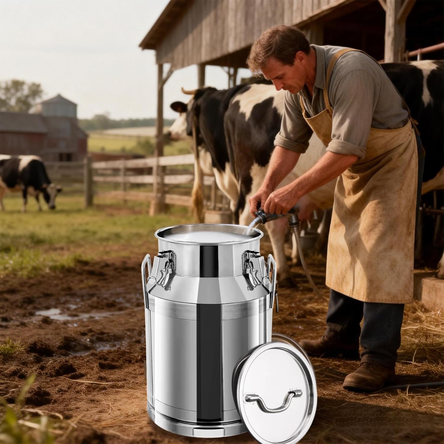 Our milk can is made of 304 stainless steel material, which is sturdy and durable. This milk bucket good sealing can store various kinds of liquids and solids, and it won't leak even if it is inverted, so you can transport it with more peace of mind. What's more, milk jug enables easier sterilization prior to brewing.Specification:Capacity: 28L 30x40CM,35L 30x50CM,48L 35x50CM,64L 35x70CM,76L 40x60CM,Note: Please allow 1-2cm error for manual measurement. The measurement mark are measured based on water. Different items may have different capacities due to different densities.Please don't mind.Effortless Cleaning: Thanks to the smooth surface and simple structure, you can easily remove the dirt on it with a soft cloth and water.Package Content:1 x Milk can