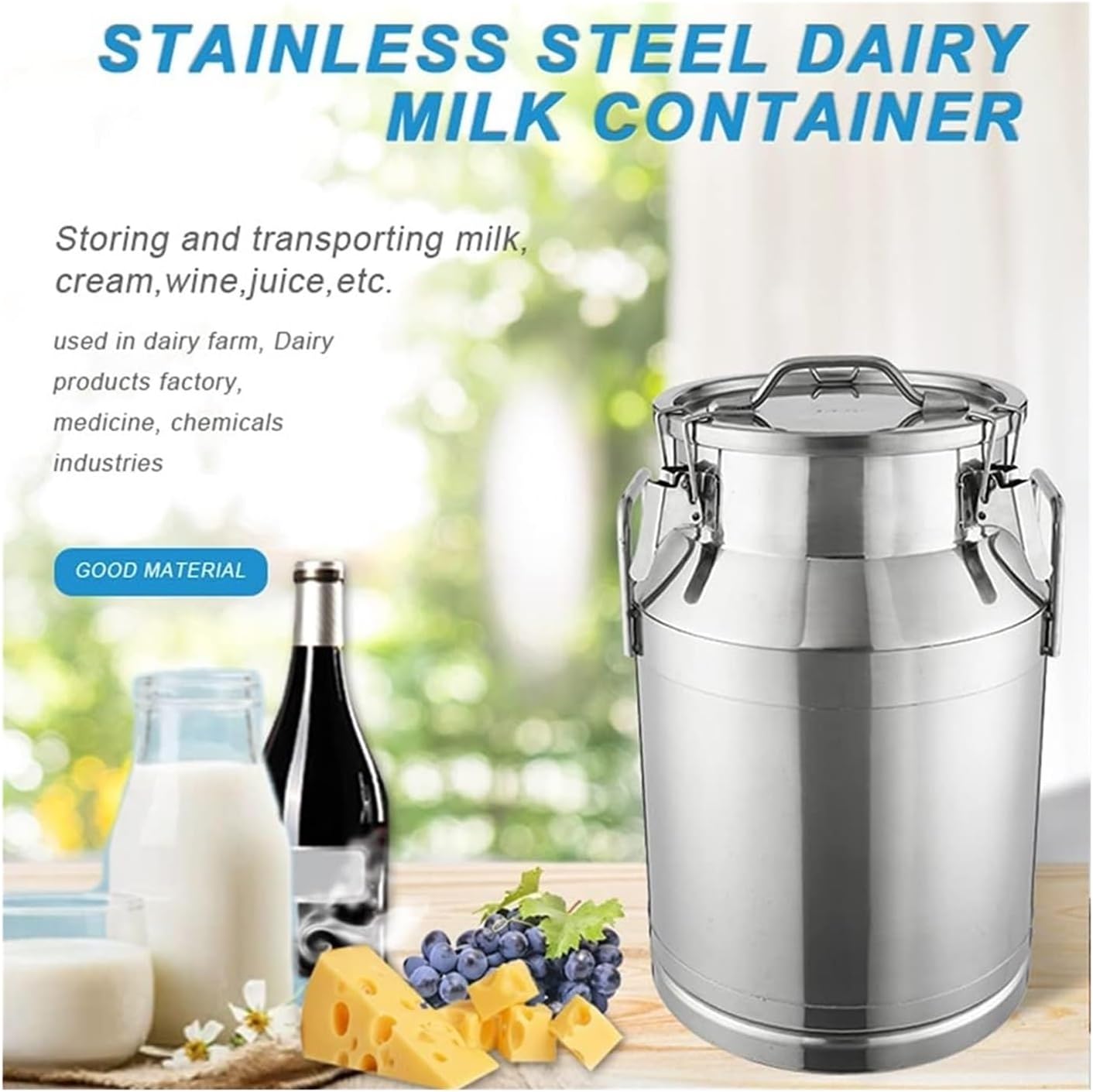 Upgrade your milk storage solutions with our premium Milk Can, made from high-quality 304 stainless steel for long-lasting durability. Ideal for both home users and professionals, this milk can seamlessly transports fresh milk, stores liquids, and serves as a versatile container for various farm products. Featuring a round shape and a sleek silver finish, this can not only looks modern but also ensures easy handling and pouring. With sizes ranging from 5L to 100L, you can select the perfect capacity to meet your needs, whether you're a small-scale farmer or managing a larger dairy operation. The silicone lid gasket provides a secure seal, effectively preserving the freshness of your liquids while preventing spills and leaks during transport. Picture yourself effortlessly carrying fresh milk from the farm to your kitchen or using this can during outdoor activities like picnics and camping trips. Its robust construction is designed to withstand the demands of daily use, making it an essential tool for anyone who values functionality and style. Our Milk Can is more than just a storage solution; it represents an investment in quality and convenience. Simplify your daily tasks while ensuring that your milk and other liquids stay safe and fresh. Opt for our Milk Can for a reliable, versatile, and stylish addition to your home or farm.