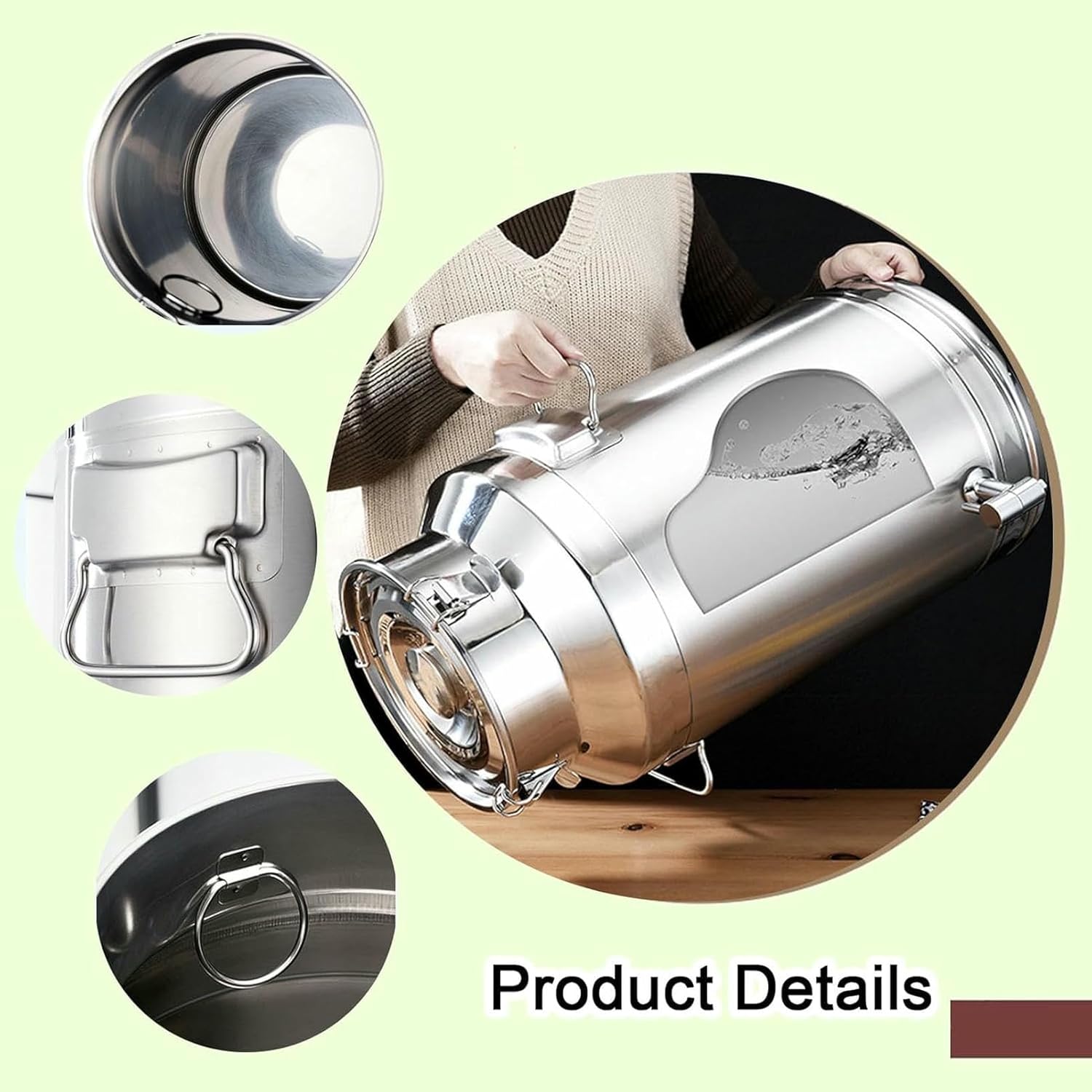 Want to carry a lot of drinks during a picnic but can't find a reliable container, or in the home kitchen, the container for storing liquids is always ineffective and makes you annoyed Don't worry, this stainless steel milk bucket is definitely your savior!This stainless steel milk pail is carefully crafted from high-quality stainless steel, which is sturdy and durable. Whether it is frequently used in the daily home kitchen or undergoes bumpy transportation during many picnic trips, it can handle it with ease.Shape: Cylinder Material: stainless steel Surface treatment: polished Gasket Material: Silicone Product use: can store rice, citrus peels, tea, grains, cooking oil, milk, etc. Use scene: home kitchen, restaurant, hotel, etc.Package Included: 1 x Stainless steel milk pailThis is the perfect solution for safely transporting milk, honey, oil and other liquids.