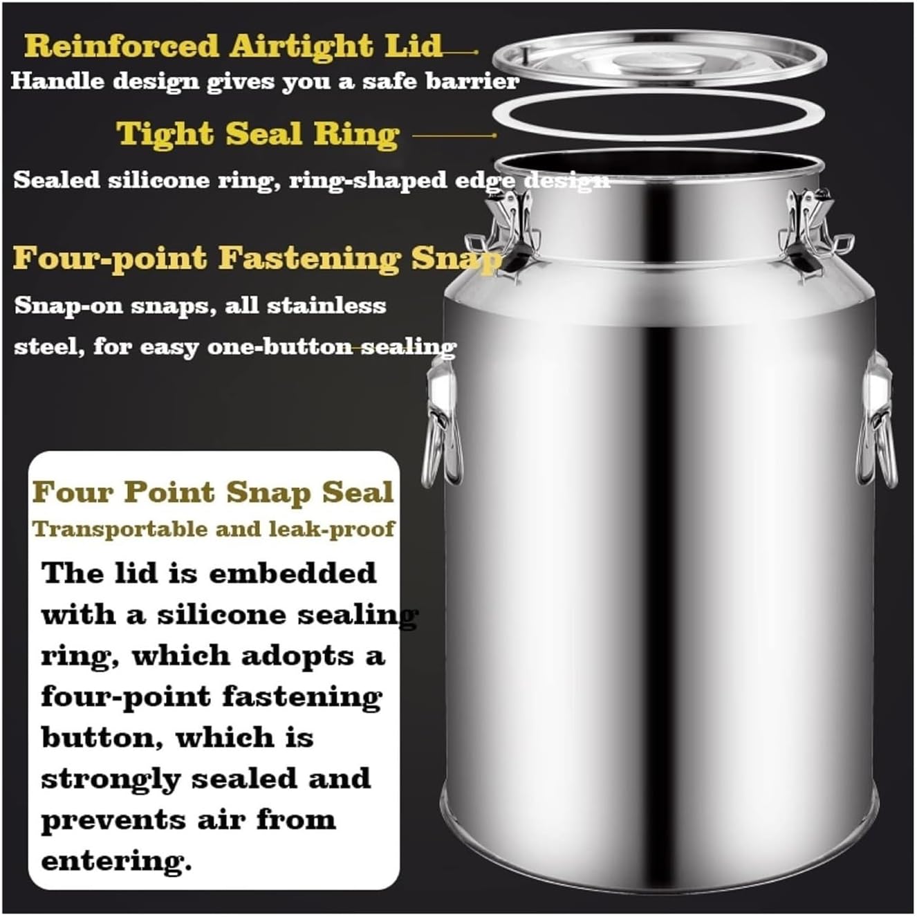 Introducing our versatile Stainless Steel Milk Can, available in sizes ranging from 5 to 100 liters and crafted from premium food-grade 201 stainless steel. This durable milk transport bucket is designed for a multitude of uses, including storing liquids, solids, and even serving as a stylish wine pail or water jug. With practicality at its core, our milk can features a silicone-sealed lid that preserves freshness and prevents spills, making it an excellent choice for both home use and professional settings. Whether you're milking cows on a farm, preparing for a family picnic, or looking for an elegant storage solution for your kitchen, our stainless steel bucket caters to all your needs. Its sleek design not only complements your kitchen décor but also ensures easy handling due to its lightweight construction. The robust 1mm thickness provides strength and durability while remaining easy to clean and maintain for long-term use. Available in three convenient sizes—5L, 9L, and 14L—this milk can is perfect for any occasion. The dimensions for each size are as follows: 5L (17x24cm), 9L (22x24cm), and 14L (22x32cm), allowing you to select the ideal fit for your requirements. Enjoy the confidence of securely storing your liquids and solids. We pride ourselves on excellent customer service; for any inquiries, please reach out, and we will respond within 24 hours. Make your purchase today and discover the convenience and quality that our milk can brings to your daily life!