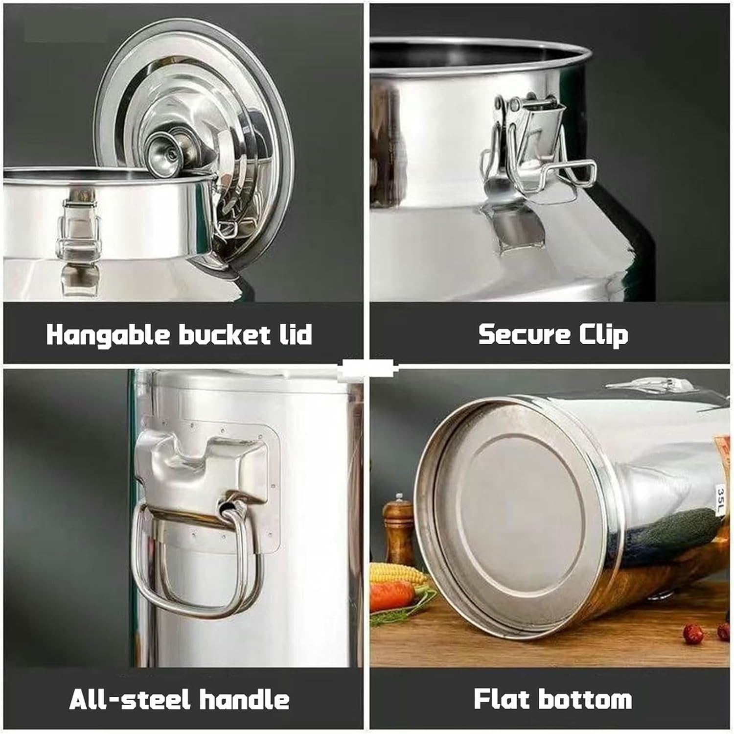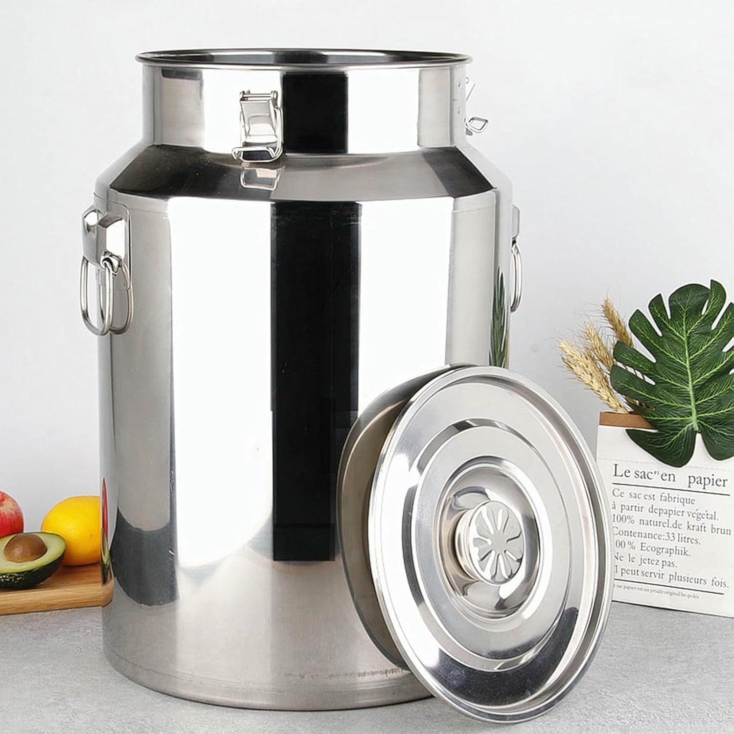 Want to carry a lot of drinks during a picnic but can't find a reliable container, or in the home kitchen, the container for storing liquids is always ineffective and makes you annoyed Don't worry, this stainless steel milk bucket is definitely your savior!This stainless steel milk pail is carefully crafted from high-quality stainless steel, which is sturdy and durable. Whether it is frequently used in the daily home kitchen or undergoes bumpy transportation during many picnic trips, it can handle it with ease.Shape: Cylinder Material: stainless steel Surface treatment: polished Gasket Material: Silicone Product use: can store rice, citrus peels, tea, grains, cooking oil, milk, etc. Use scene: home kitchen, restaurant, hotel, etc.Package Included: 1 x Stainless steel milk pailThis is the perfect solution for safely transporting milk, honey, oil and other liquids.
