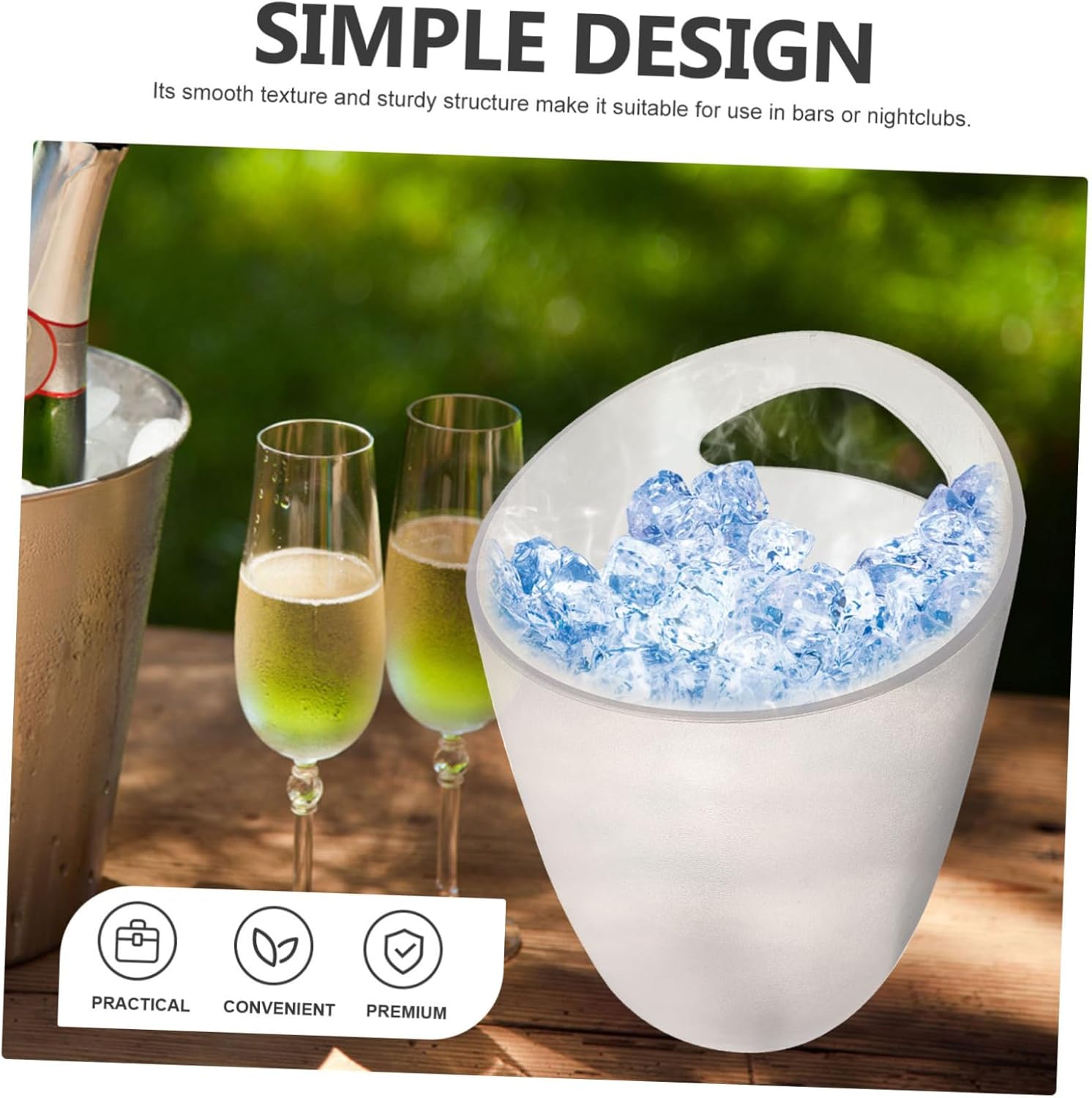 Package List 1 x Bucket Features -Capacity:3L iced tea pitcher -Material:Acrylic ice buckets for parties -Color:Transparent bottle bucket -Size:25.00X20.00X19.00cm/9.82X7.86X7.47in clear buckets -Adopted of acrylic material, portable and firm, giving you better hand feeling juice container. -It's thickened and enlarged capacity, is able to satisfy your basic need beverage bucket. -Adopt integrated molding craft, armed with stable handle design, making it labor-saving to use clear buckets for drinks. -It's a to add ice into red wine and cocktail, storage any drinks you like juice container for party. -Its capacity is great for small gatherings, such as gatherings or special events. Suitable for different scenarios, hotel, bar, KTV, beach party, etc beverage ice bucket.Goods Descriptionbucket for drinks Perfect bucket for home, bar, club, KTV and other places.ice buckets This Ice Cube Bucket is made of acrylic material.ice cube bucket Ergonomic single handle, labor-saving and stable lifting.beverage bucket Smooth and good texture appearance, large capacity to meet your needs.iced tea pitcher It can keep the drink at the temperature