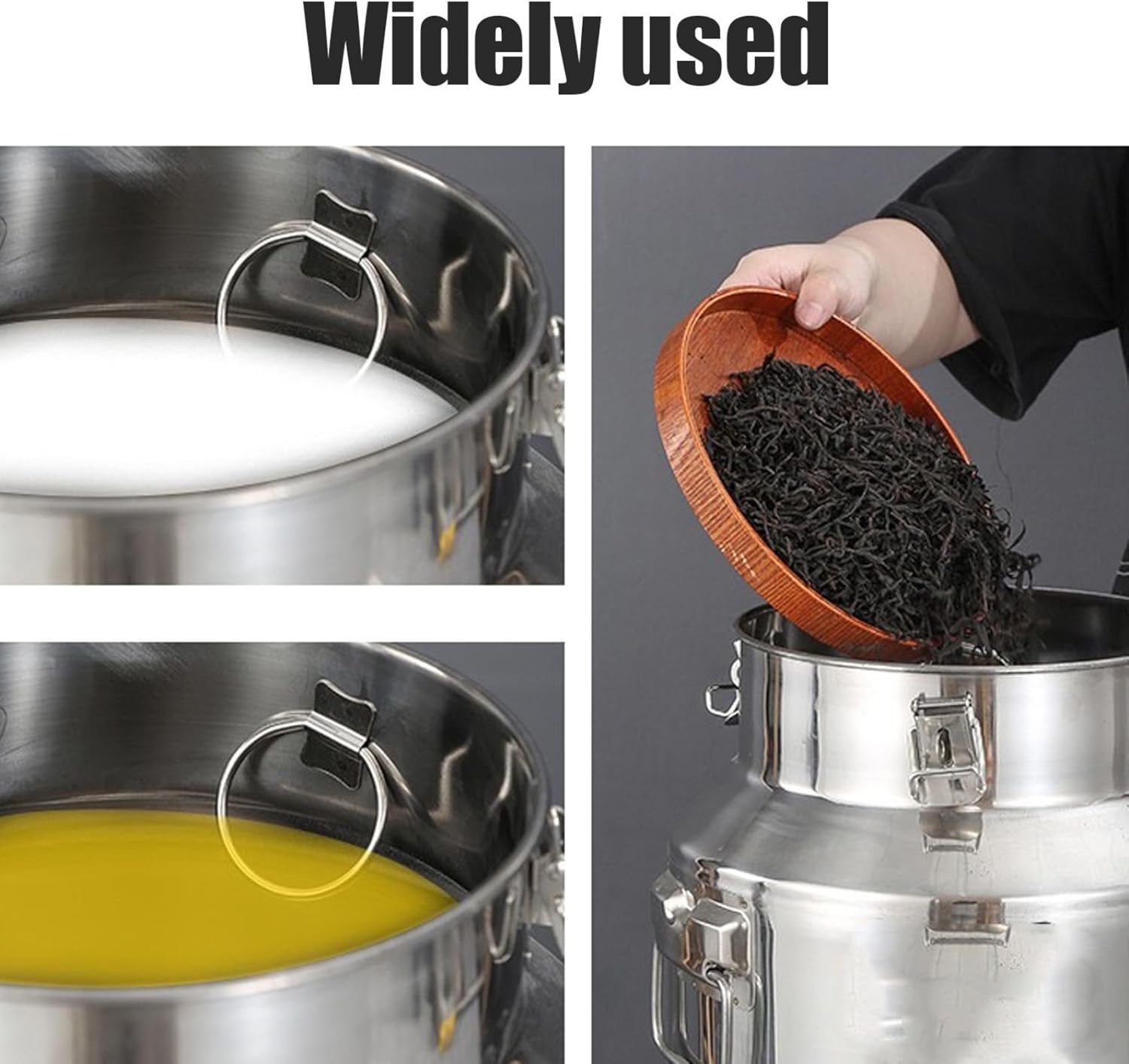 Description: Airtightness is an important condition for storing food because food is less likely to spoil or become tasteless under good sealing conditions. Our milk can with three latches and silicone seal provides you with quality and flavor preservation. Featuring 304 stainless steel material, it has acid and alkali resistance and high temperature resistance, so you can use it with confidence. Our stainless steel milk pail with carry handle will ensure you can easily carry items such as milk without having to worry about spillages. The milking pail with lid for storing oil, ghee, milk, wine, etc. Whether for home use or commercial use, our stainless steel milk bucket is your perfect option. It is going to hold up well with your daily milking routine. Features:. Stainless Steel Milk Can. -Color: silver. -Material: 304 Stainless Steel. -Size:. bottom diameter: 22 cm/8.66 inch. height: 24 cm/9.45 inch. opening diameter: 17.5 cm/6.89 inch. -Capacity: 9L. -PLEASE NOTE: The temperature of the hot oil cannot exceed 170. Note: Manual measurement, please allow slight errors on size. The colors may exist slight difference due to different screens. Package Including 1 * Stainless Steel Milk Can