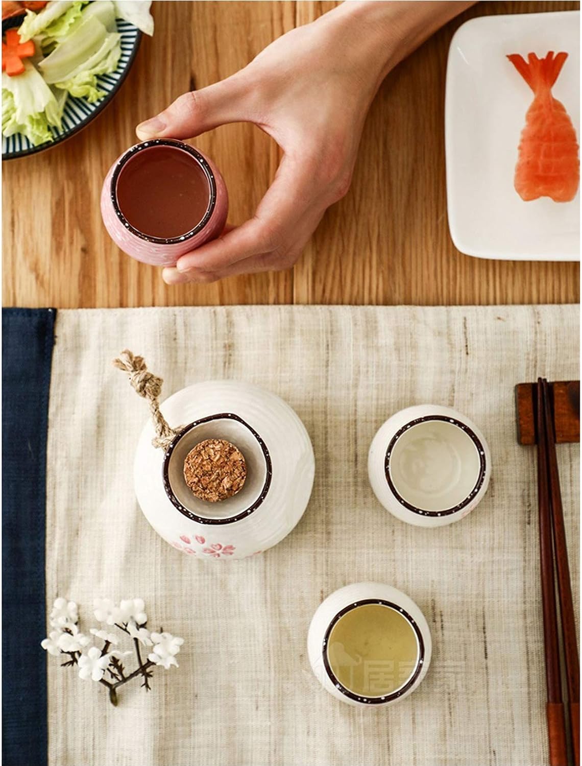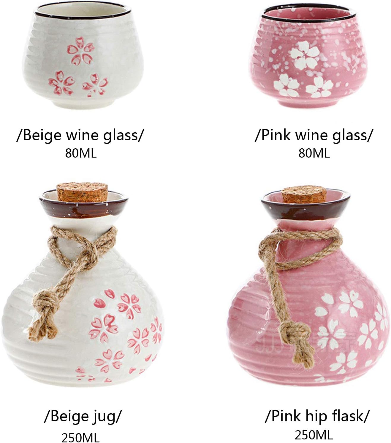 Specification:Material: CeramicCup: Fill of 80 ml,4.8*4.8CM/1.87*1.87inCanned: Fill of 250 ml,10*5CM/3.9*1.95inchPackage list:1 x Sake pot6 x sake cups