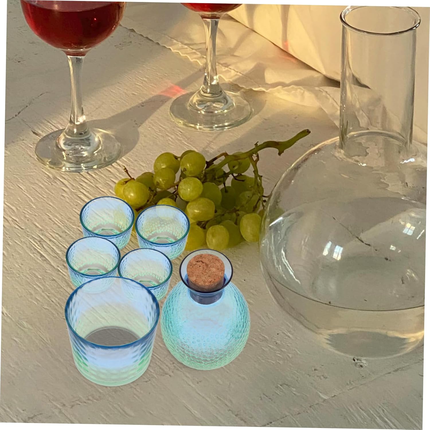 Package List 1 x sake bottle 1 x sake tank 4 x sake cups Characteristics -Color:Multi glass sake bottle -Size:5.50X4.60X4.60cm/2.16X1.81X1.81in japanese sake set -Size:11.30X11.30X9.00cm/4.44X4.44X3.54in japanese tea set -Material:Glass sake bottle with cup -Size:12.50X8.00X8.00cm/4.91X3.14X3.14in japanese server -The sake kit is for storing and dispensing water, tea, and sake, an for impressing your guests tasting cups. -Sake set can also be a practical and special present choice for family and friends who love sake sake set. -Enjoy your favorite sake with this delicately crafted bottle and cups made from glass materials that are and japanese tea cups. -The smooth sake serving kit features an elegant and simple design, suitable for most occasions serving bottle. -Whether used for a tea party or as a decorative item for your home, this sake kit adds sophistication to any setting glass tea cups.Goods Descriptionsake bottle The elegant and simple design, the sake set can also be unique present option for your family or friends.japanese mug Using glass materials, these sake cups and bottle are and , for entertaining friends and family at personal gatherings and can be used for serving water, tea, or sake