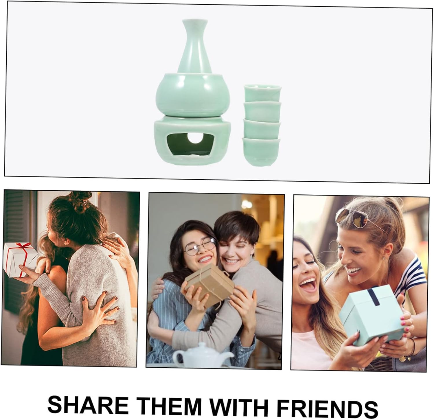 Package Include 1 x pot 4 x cups 1 x heating stove 1 x base Features -Size: About 5.7x4.1x4.1cm/2.24x1.61x1.61inch sake bottle. -Color: Light Green Sake Serving Cup with Warmer. -Material: Ceramic setssake. -Size: About 13.90X6.70X6.70cm/5.46X2.63X2.63inch pottery sake warmer. -Size: About 11.1x6.8x6.8cm/4.37x2.68x2.68inch Ceramic Sake Serving Cups. -Size: About 10.8x6.6x6.6cm/4.25x2.6x2.6inch cold. - These wine containers are made of ceramic material, which are safe and box. - Traditional Japanese style, suitable for many occasions. Also, a nice ornament Sake Warmer. - for drinking at your celebratory party with friends, with stylish and creative elements cold saki pot. - The smooth surface will make you feel comfortable and make a great home decoration hot saki drink warmer. - You can get this set of Japanese style wine glass set at an and reasonable Sake Container.Goods Descriptionmini wine bottles for favors You can give it to your friends who like to drink, this product looks very -end atmosphere.japanese tea cup This is a ceramic drinking utensil with a Japanese style design, creating a unique atmosphere.sake serving The material is excellent and easy to store