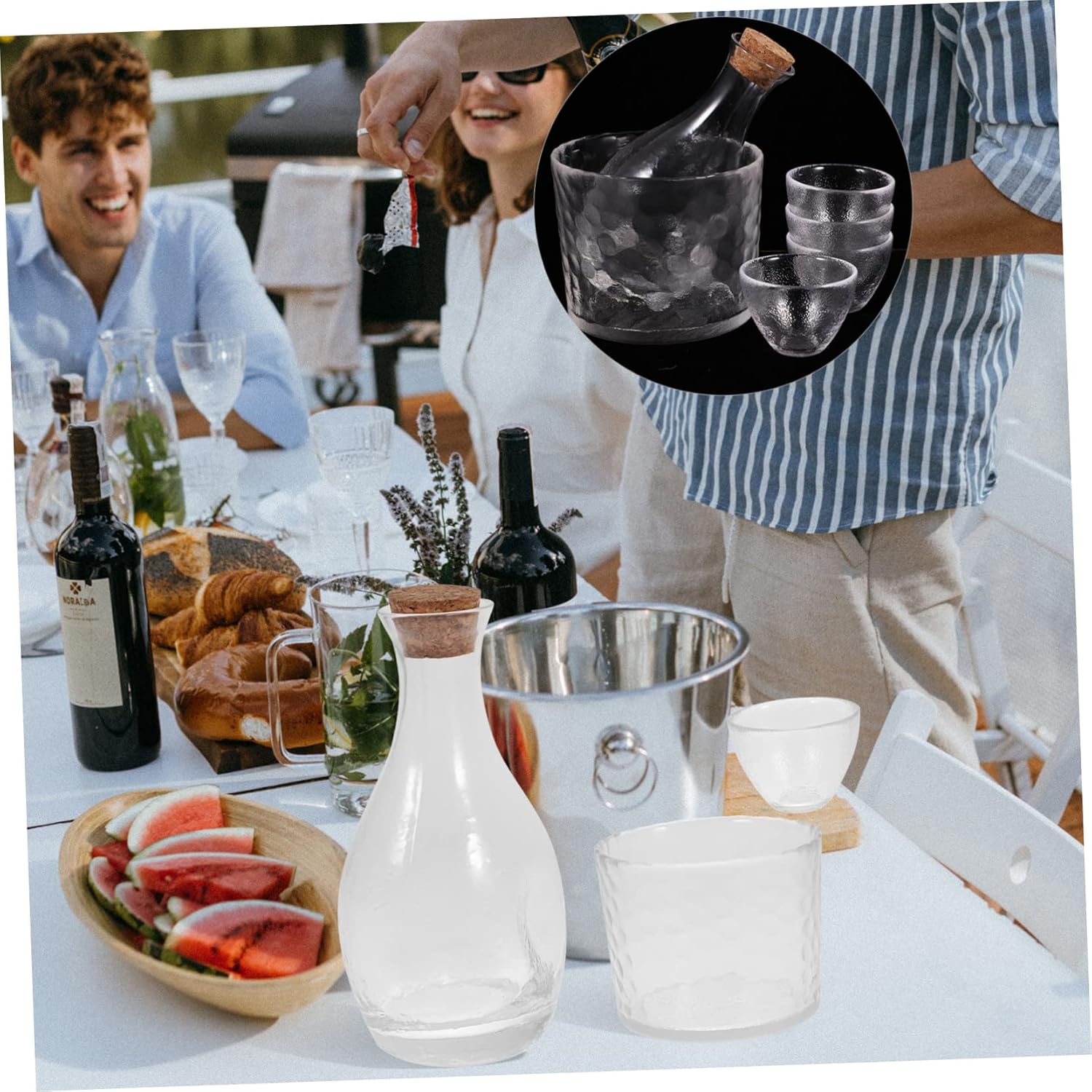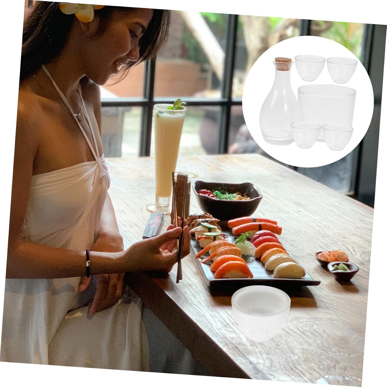 Package List 4 x Cups 1 x Pot 1 x Bottle Features -Size(Small Cup):5.40X4.20X2.50cm/2.12X1.65X0.98in household wine dispenser -Material:Glass sake glass for home -Size(Pot):12.50X4.00X3.70cm/4.91X1.57X1.45in sake pot for restaurant -Size(Big Cup):11.50X1.00X9.00cm/4.52X0.39X3.54in wine dispenser for restaurant -Color:Transparent creative sake glass -Exquisitely designed, and well-made Japanese wine glass is a wonderful choice as a present to your friends and families wine dispenser. -Fine workmanship, refine process, beautiful appearance its practicality and popularity storage wine dispenser. -Storage Sake Glass, narrow neck is designed for retaining and preventing leakage creative sake pot. -Manufactured with glass material, and enough to use cherry blossoms wine dispenser. -After using your sake bottle and cups, wash them out with water and let them dry in a well-lit and airy space storage sake glass.Goods Descriptionjapanese-style wine dispenser Coffee, milk, tea, spirits and other drinks can also be enjoyed with our multifunctional small glass sake cups.wine dispenser for home The fine workmanship, fine craftsmanship and beautiful appearance its practicality and popularity.kitchen sake pot Japanese style sake dispensers are sake cups and pots, and home sake pots are made of reliable glass materials for durability and practicality