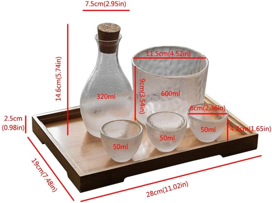 Product name: Japanese wine set Product material: lead-free glass Product style: retro Product color: transparent Product capacity: 50ml / 350ml/600ml Product Quantity: 4 piece set/5 piece set/6 piece set Product size: please refer to product picture Applicable scenarios: family, living room, bedroom, study room, coffee table, desktop, office, restaurant, hotel, etc. prompt: 1. Due to the difference of light and shooting angle, there may be slight chromatic aberration, please understand. 2. Please confirm the color and size before purchasing. 3. Product photos do not include products other than products. 4. Manually measure the size, there may be some small errors, please refer to the actual product, thank you. 5. Glass products are fragile, please use them carefully. 6. Welcome to share and feedback, we can provide you with better products and services. 7. If you find any problems with our products, please feel free to contact us via email, we will solve these problems as soon as possible. Usage scenarios: The sake set can be used for tea parties, or as home decorations, or as a holiday gift.