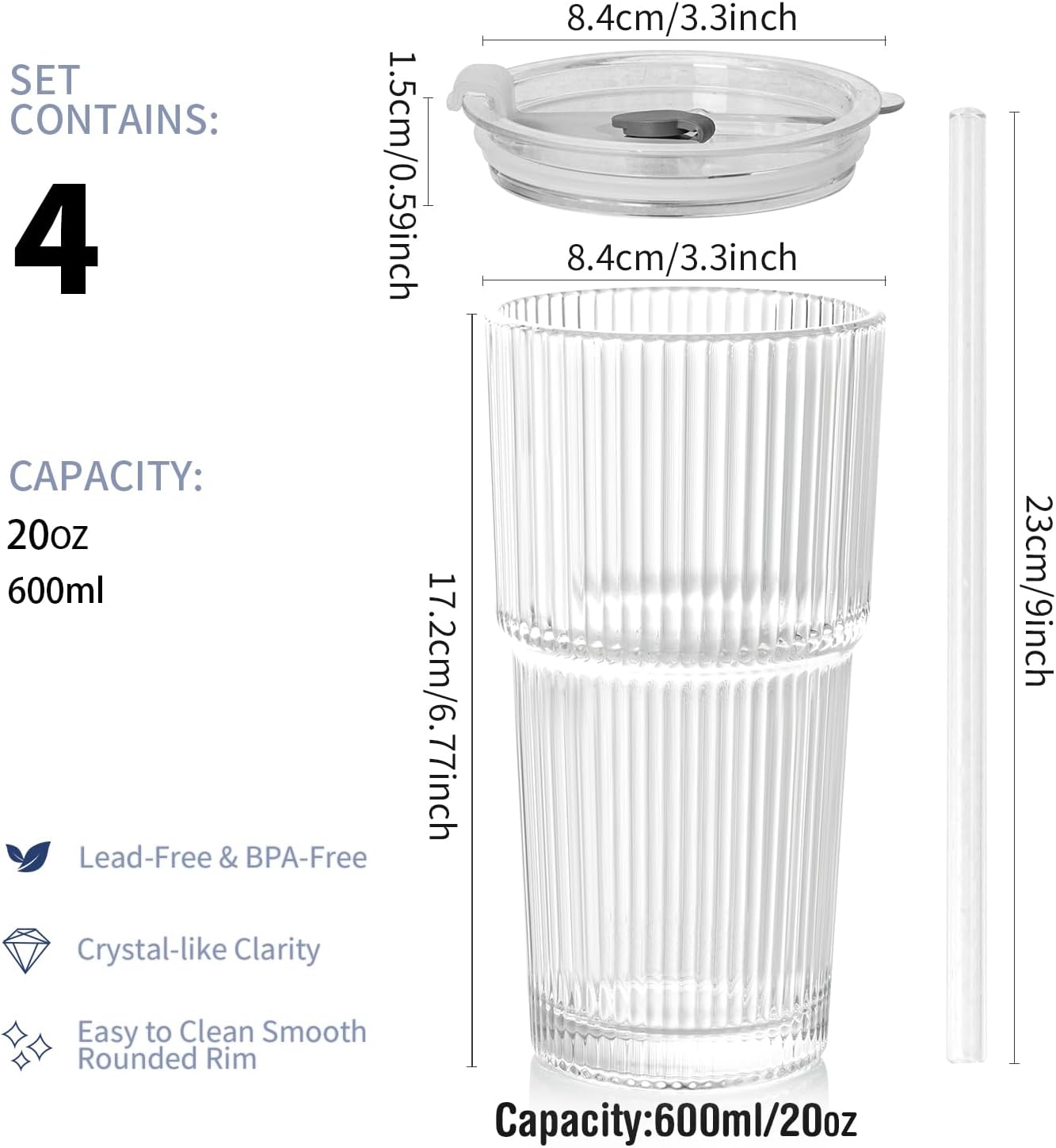 | Included Components | 4pc 20oz with Lids and Glass Straws |