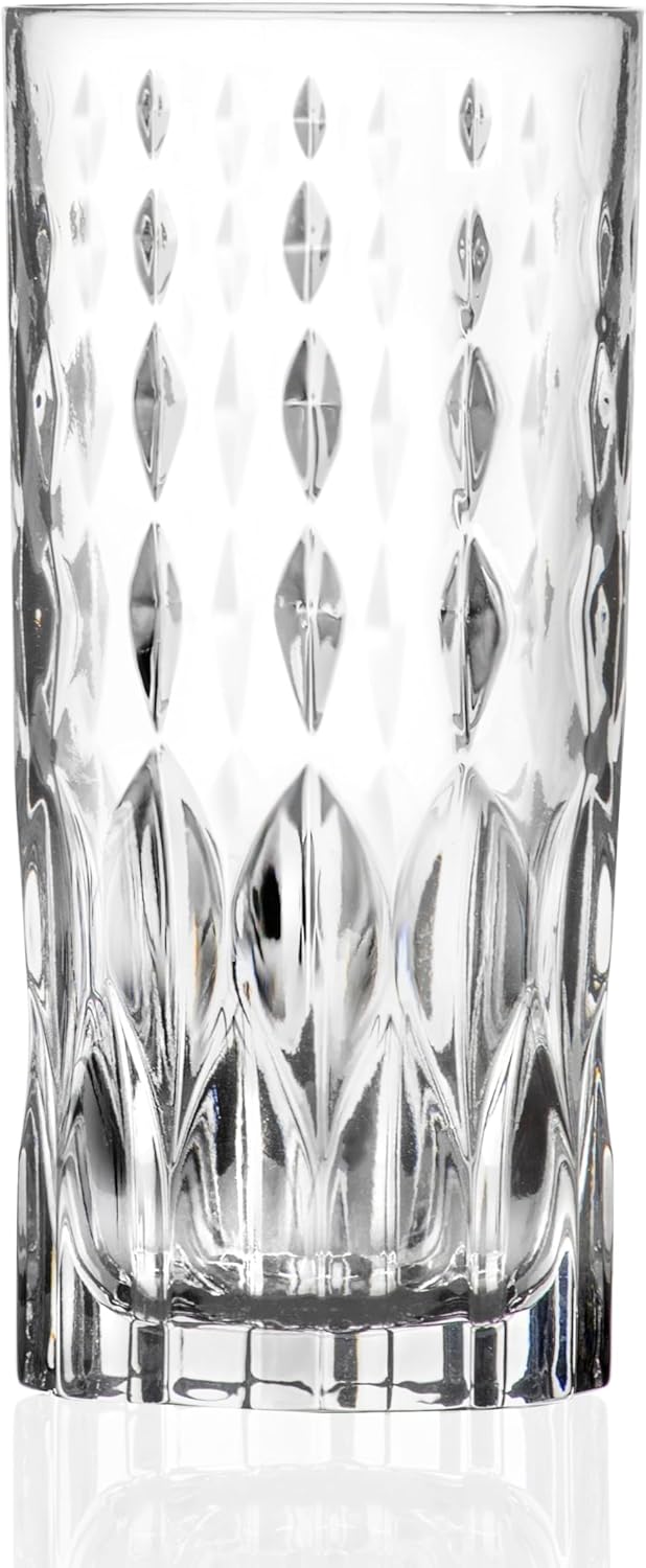 The Marilyn Collection is an upscale and elegant collection with a flared top and sturdy cut crystal stem. Featuring a series of oval cuts increasing in size as they cascade down the glass. Cuts in the bowl and stem of the glass reflect the light bueatifully, creating a stunnig look. Made in the Tuscon region of Italy with the highest standard of quality and attention to detail. Set of 6 is perfect for entertaining and serving that perfect cocktail. Each glass measures 2.75" x 2.75" x 5.75". Holds 11 ounces.