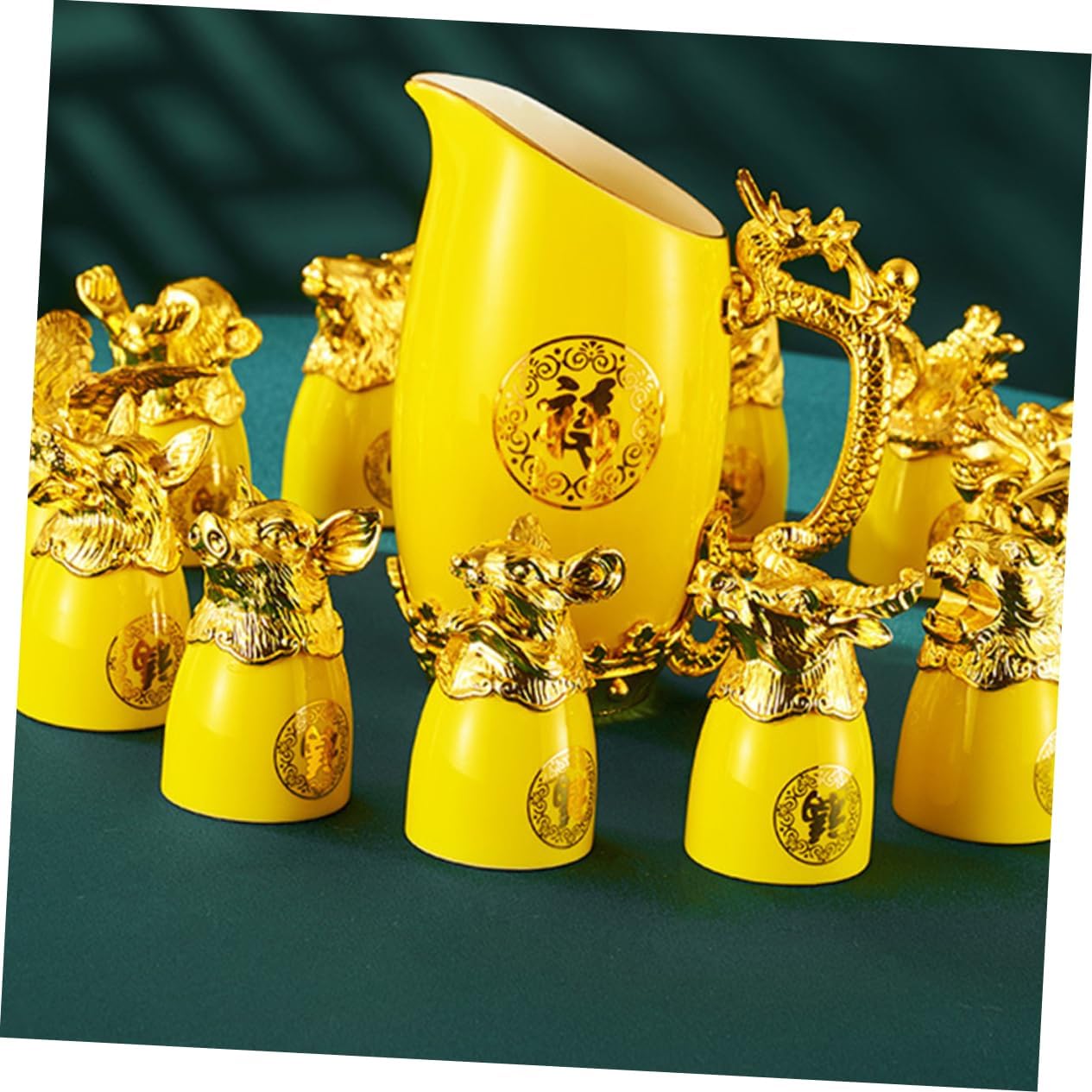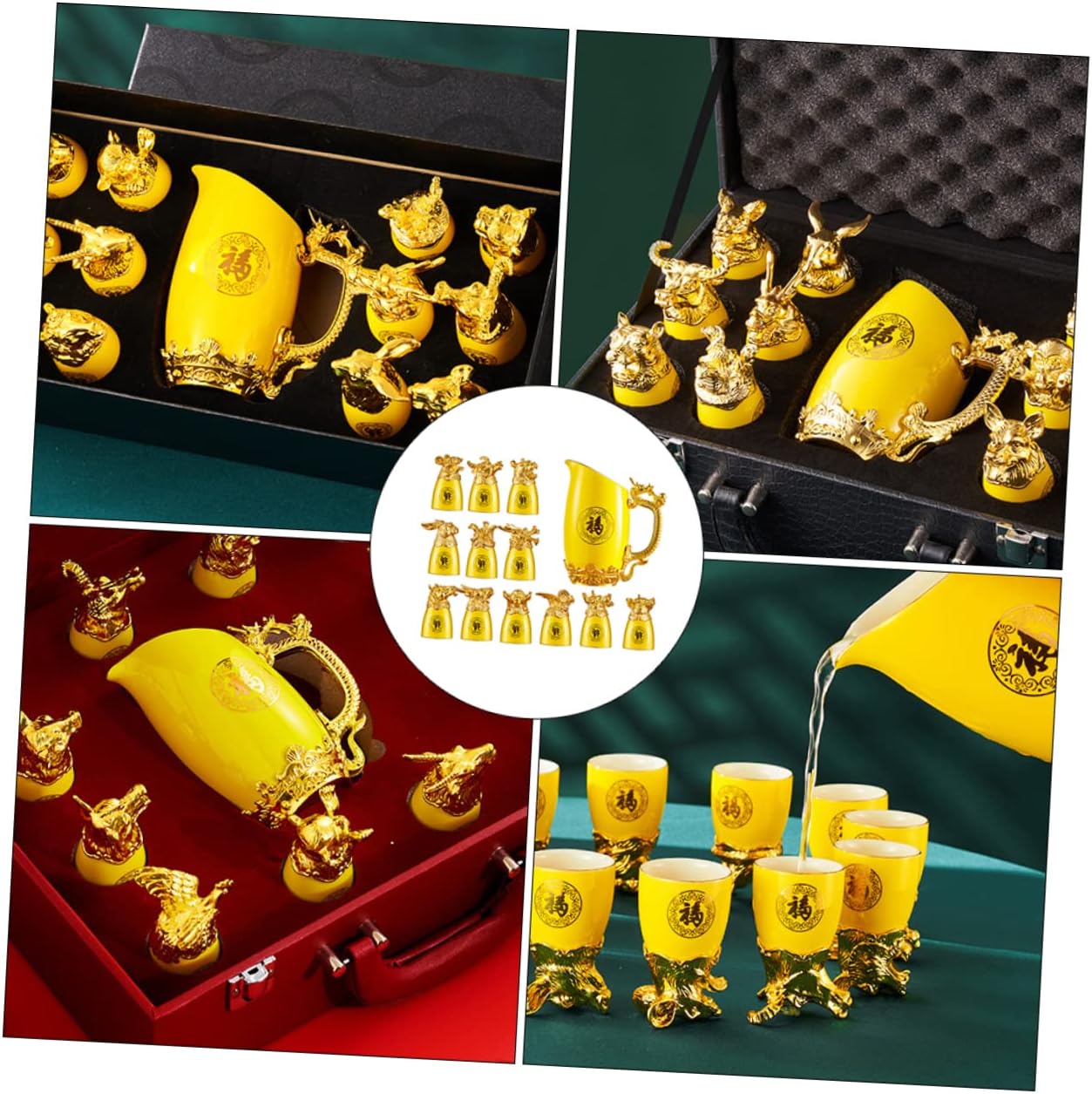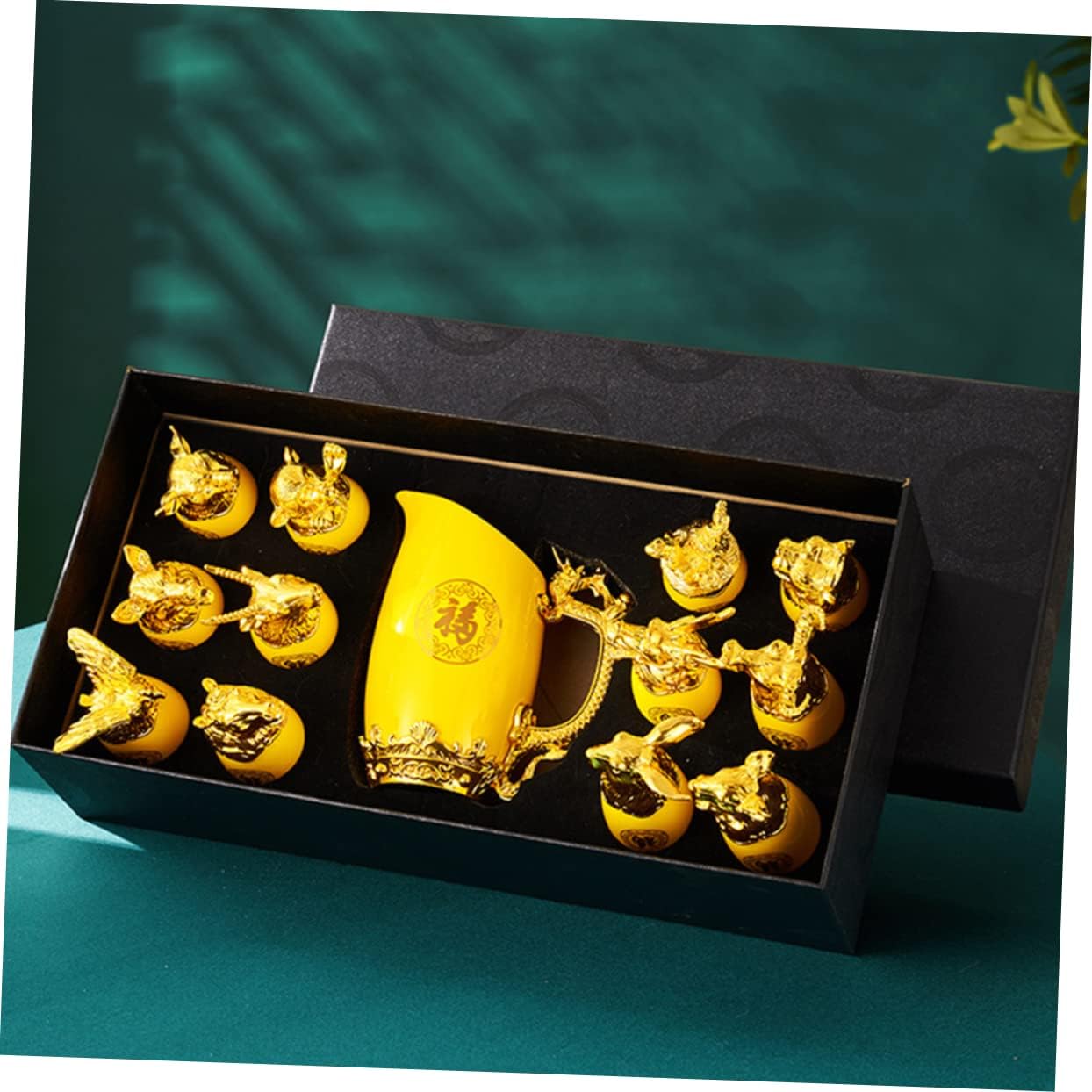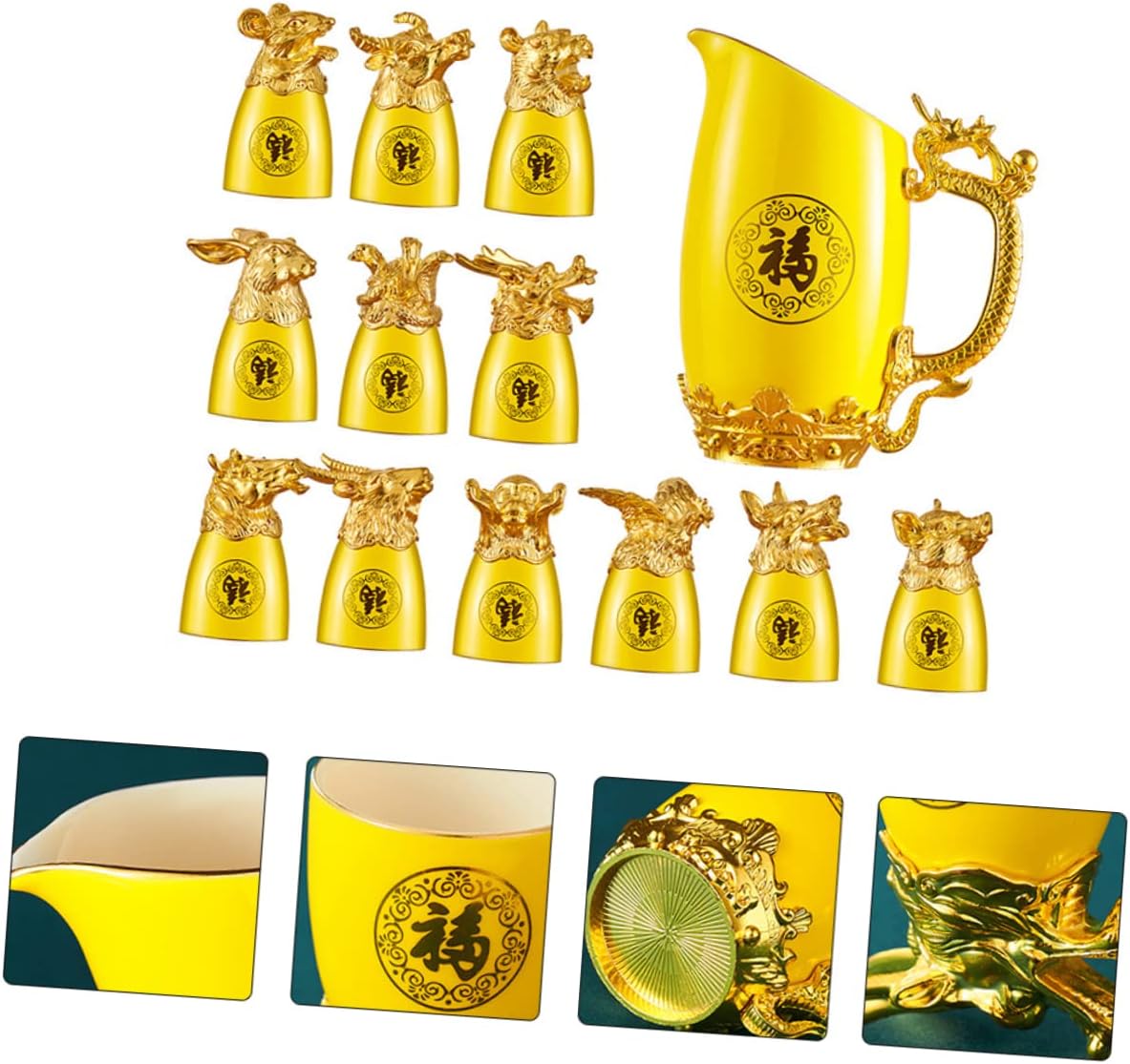 Package List 12 x Chinese Zodiac Wine Cups 1 x Wine Dispenser 1 x present Box Features -Size (Wine Dispenser): 12.50X11.00X7.00cm/4.91X4.32X2.75in Ceramic Wine Cups Kit -Color: Kit -Size (Wine Cup): About 6.50X4.00X4.00cm/2.56X1.57X1.57in Home Ornament -Material: Ceramic Wine Pot -They are made of ceramics and are to use. The design is beautiful and will add a unique flavor to any barroom -plated Cup. -These cups and pot are suitable for drinking water, sake, and spirits, and they are also a nice White Wine Dispenser. -Luxury -plated and Chinese zodiac appearance design make it an elegant for sending to friend Dispenser. -Not easy to fade and break. Suitable for home, bar, camping, hotel and other places Container. -These cups and pot are made of ceramic materials, can use them with confidence -plated Cup Kit.Goods DescriptionZodiac Cup They are entertaining family or guests at home, , restaurants or any special drinking occasions. Dispenser This is a cup and wine dispenser kit with unique Chinese zodiac style design, made of materials, and to use.Luxury Home Decor This kit will meet your needs and are very