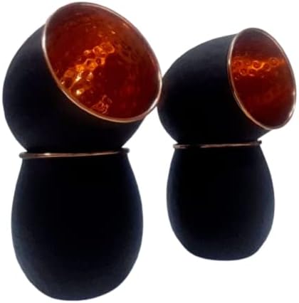 COPPER WATER COLOURED GLASS GREEN/BLACK/BLUE SET OF 4 PCS FOR DRINKING WATER 99 % COPPER METAL BENEFITS HEALTH DRINK WATER