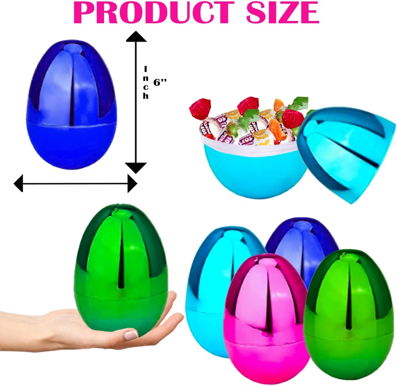 Chochkees Jumbo Metallic Fillable Easter Eggs Colorful Bright Plastic Easter Eggs, Stands Upright, Perfect For Easter Egg Hunt, Surprise Egg, Easter Hunt, Assorted Colors, 8" Giant Fillable Eggs. These Colorful Bright Plastic Fillable Easter Eggs are the Hit of every Party. Detach the egg halves to Fill them up with a Surprise for your Little One. Stands Upright. Fill These Cute Easter Eggs With Candies, Chocolates And Toys And Give To Children As Holiday Gifts Or Party Favors. The Jumbo Fillable Easter Eggs will add Fun and Atmosphere to your party that will leave good memories to all your guests! They are wonderful gifts for Birthday Parties, Carnival Prizes, Classroom Rewards, Goodie bag Fillers and much more! These Jumbo Fillable Easter Eggs are made from Plastic and are 8" Inches