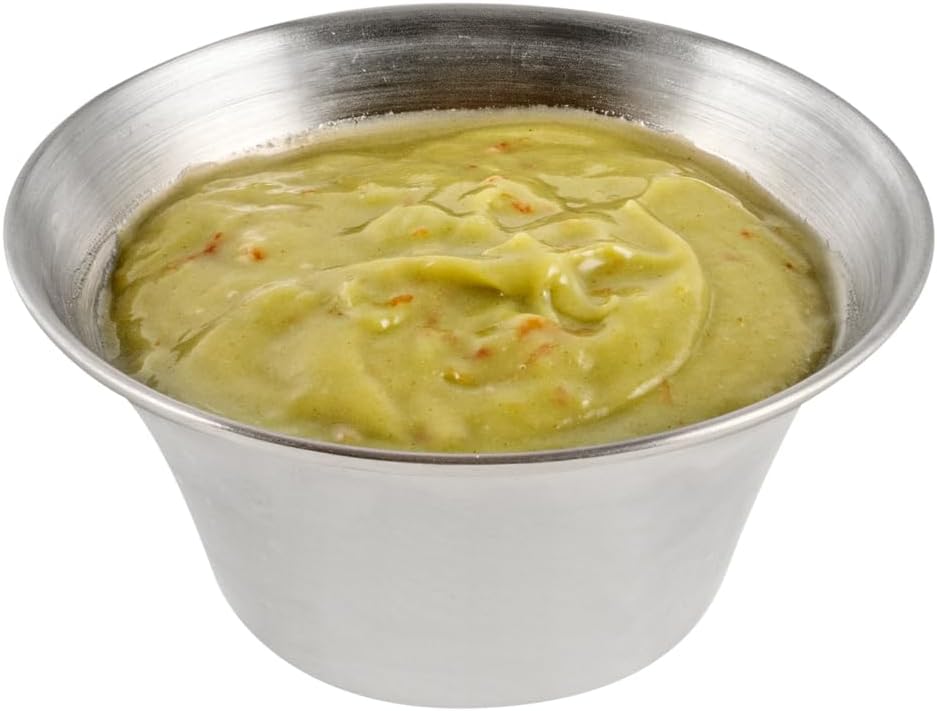 Easily contain delicious sauces with our Met Lux Stainless Steel Condiment Cups. Containing up to 6 ounces, these stainless steel condiment cups are perfect for serving a side of pico de gallo with cheese quesadillas or a serving of chimichurri sauce with savory skirt steak. Crafted from high-grade stainless steel, these metal condiment cups are durable and conveniently reusable. These stainless steel sauce cups instantly upgrade condiments at your restaurant, bistro, cafe, and more. These 6 oz condiment containers measure 3.8 inches in diameter by 2 inches tall and ship in a 10 count box.