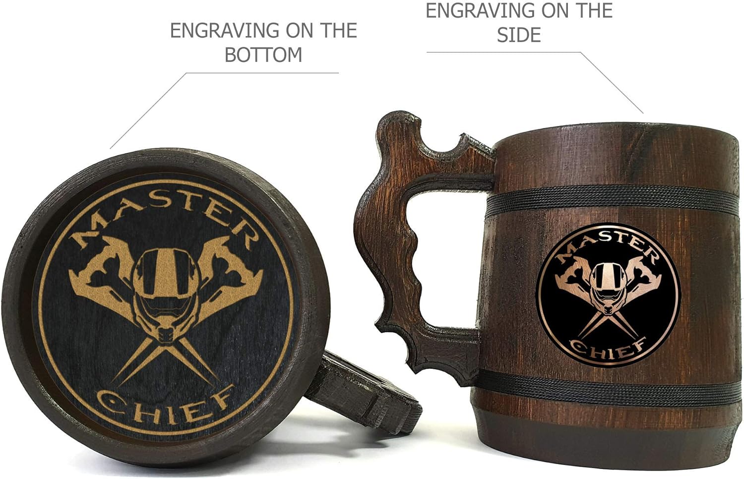 Unique handmade wood tankard is a right choice, if you are looking for gift ideas for men, he will enjoy drinking beer from it. The stainless steel insert inside the wooden casing of the mug will keep the temperature of the beer colder, for a longer period during the summer. All enthusiasts of beer along with fans of football or soccer; medieval fantasy novels and role-playing games; or just lovers of renaissance stylish and carefully handcrafted oak wooden mugs will adore such gifts! Handmade mugs are a perfect gift for grooms and groomsmen. This mug is great for any occasion - birthdays, name days, weddings, graduations, father's day, or any other significant occasion! Purchase several for your bachelor or bachelorette parties to impress your guests. There is no better gift, than a wooden mug with stainless steel cup, for a man or women who loves beer or other cold drinks. Handmade of natural oak wood and accomplished in a dark brown color, this solid mug gives beer its own particular taste.