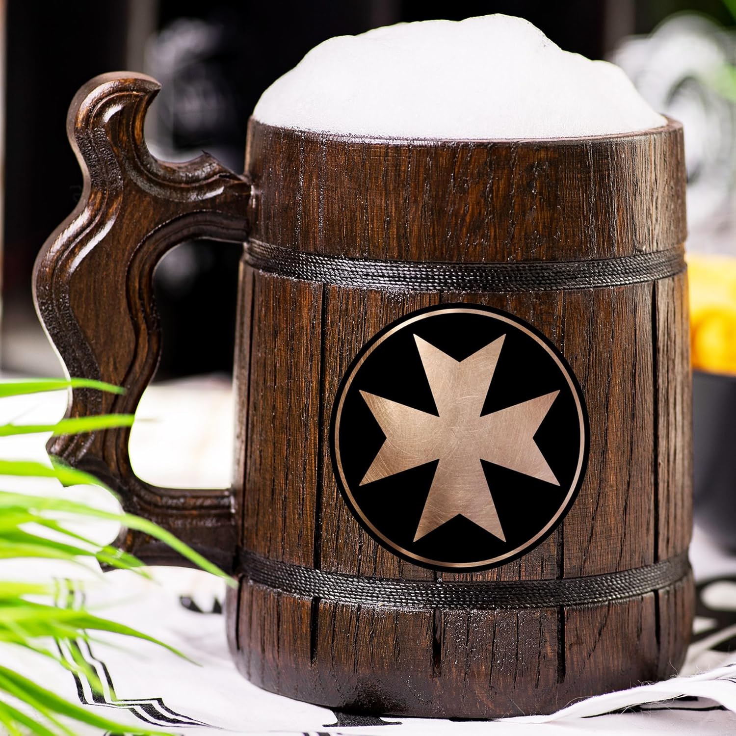 Unique handmade wood tankard is a right choice, if you are looking for gift ideas for men, he will enjoy drinking beer from it. The stainless steel insert inside the wooden casing of the mug will keep the temperature of the beer colder, for a longer period during the summer. All enthusiasts of beer along with fans of football or soccer; medieval fantasy novels and role-playing games; or just lovers of renaissance stylish and carefully handcrafted oak wooden mugs will adore such gifts! Handmade mugs are a perfect gift for grooms and groomsmen. This mug is great for any occasion - birthdays, name days, weddings, graduations, father's day, or any other significant occasion! Purchase several for your bachelor or bachelorette parties to impress your guests. There is no better gift, than a wooden mug with stainless steel cup, for a man or women who loves beer or other cold drinks. Handmade of natural oak wood and accomplished in a dark brown color, this solid mug gives beer its own particular taste.