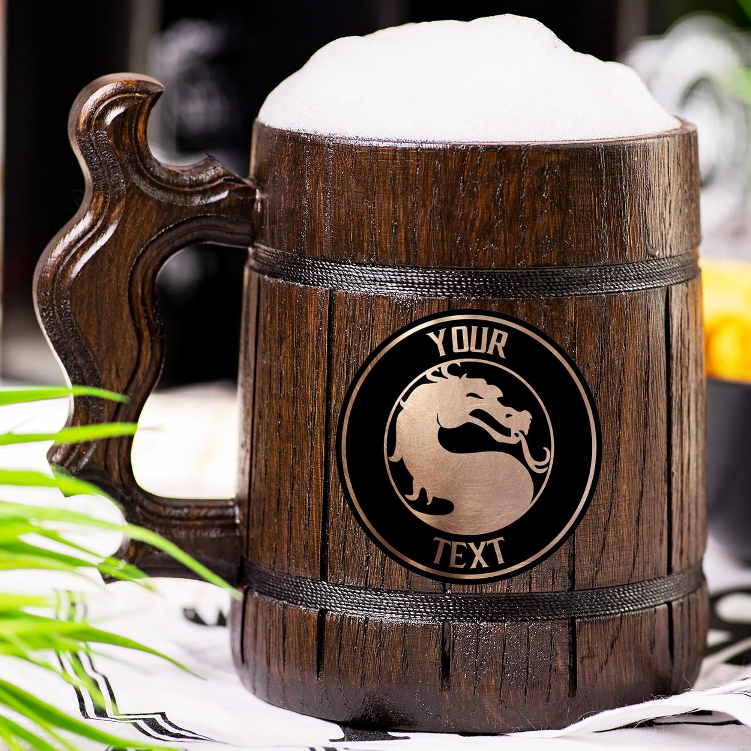 Unique handmade wood tankard is a right choice, if you are looking for gift ideas for men, he will enjoy drinking beer from it. The stainless steel insert inside the wooden casing of the mug will keep the temperature of the beer colder, for a longer period during the summer. All enthusiasts of beer along with fans of football or soccer; medieval fantasy novels and role-playing games; or just lovers of renaissance stylish and carefully handcrafted oak wooden mugs will adore such gifts! Handmade mugs are a perfect gift for grooms and groomsmen. This mug is great for any occasion - birthdays, name days, weddings, graduations, father's day, or any other significant occasion! Purchase several for your bachelor or bachelorette parties to impress your guests. There is no better gift, than a wooden mug with stainless steel cup, for a man or women who loves beer or other cold drinks. Handmade of natural oak wood and accomplished in a dark brown color, this solid mug gives beer its own particular taste.