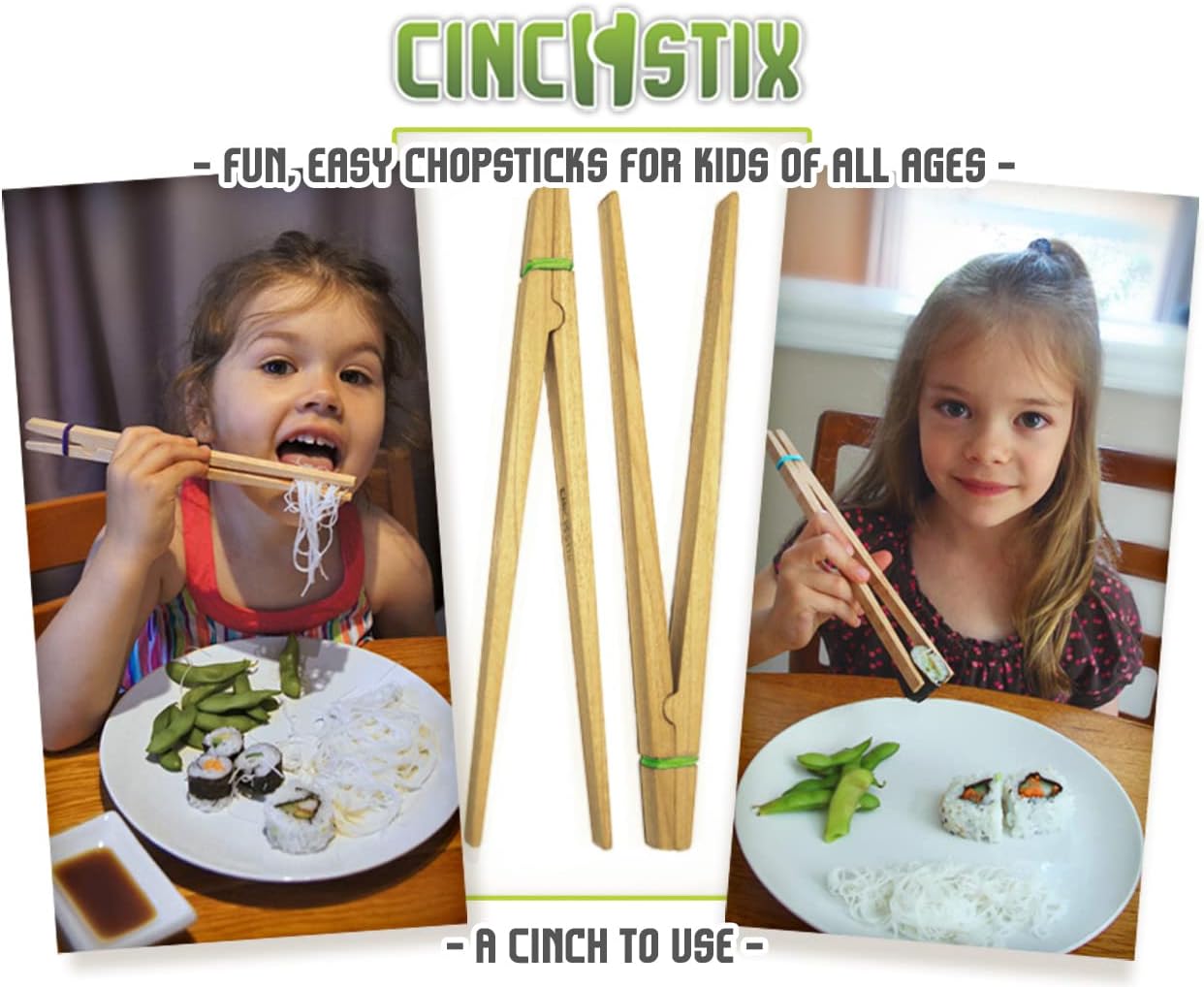 Kids Chopsticks - Cinchstix Black Walnut Slimline Case Comboset,1pair-includes one pair of Cinchstix and a beautiful Slimline Case to carry and store your Cinchstix.-a Cinch to use--Fun, Easy Chopsticks-Simple, clean design-Building dexterity with less frustration-Wider ends make it easier to pick up food-Promotes healthy eating-Proudly handmade in CanadaThe Slimline Combo Set includes one pair of Cinchstix and a Slimline Case to carry and store your Cinchstix in.Take it on the go, keep in your bag, purse,etcGreat as a gift and stocking stuffer!Product Info:Cinchstix came about after watching my daughters trying to eat with gimmicky plastic chopsticks, held together with a rubbery animal shape. Cute, but twisted easily ending up with most of the food on the floor or them. Leaving both kids and parents frustrated.I designed something that’s clean and simple, easy to hold and use. The look and feel of natural wood not only looks great, but also helps with grip. Wider ends make picking up easier.Cinchstix are proudly handmade here in Canada.I hope you enjoy using them. Product Care:Hand wash in soapy water, rinse clean and towel dry. After repeated uses you can apply a food grade safe mineral oil or cutting board oil to the wood. This will help seal the wood, protect from moisture and reduce staining. Simply apply with a clean paper towel and allow to absorb, wipe off any excess.