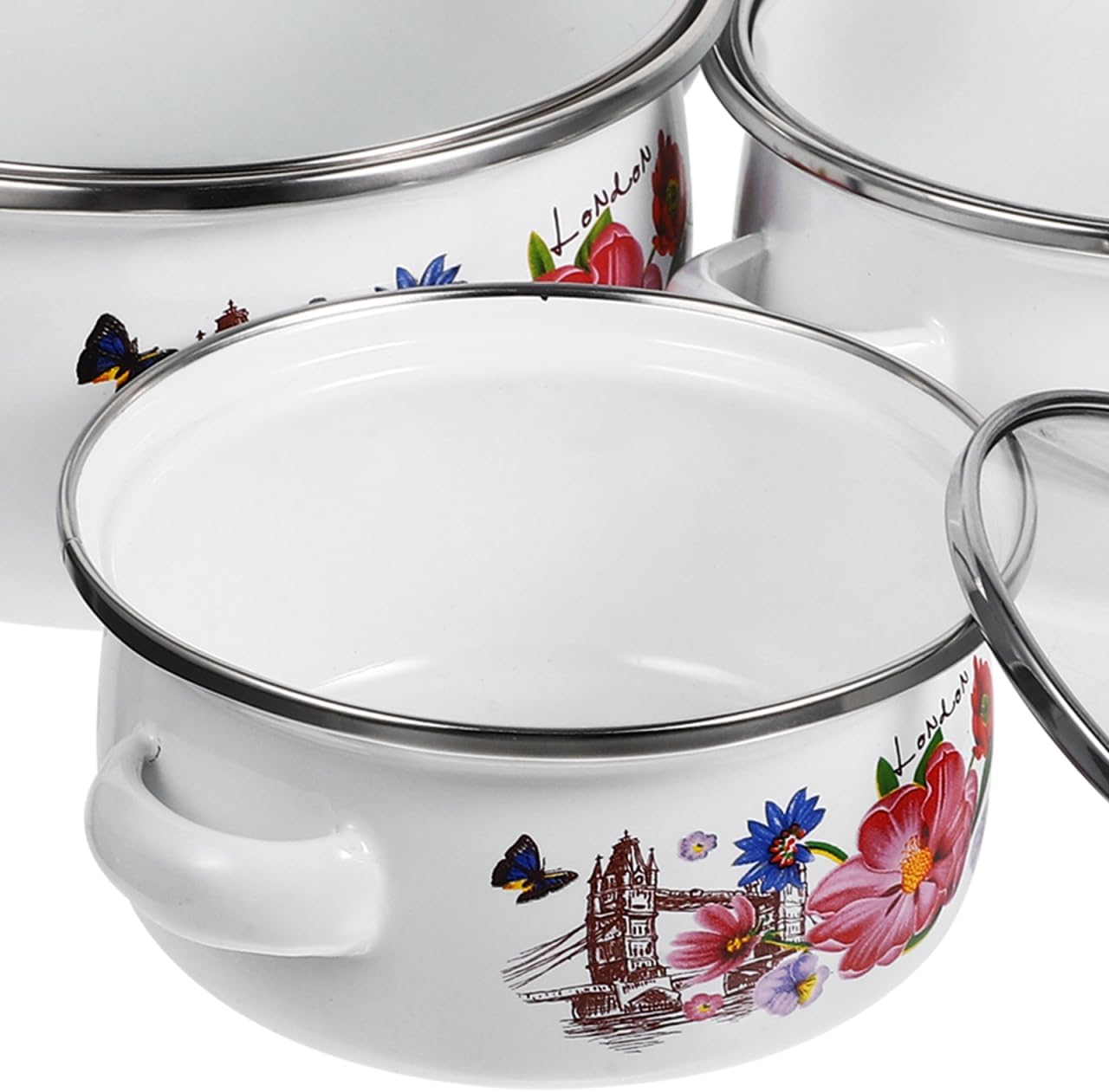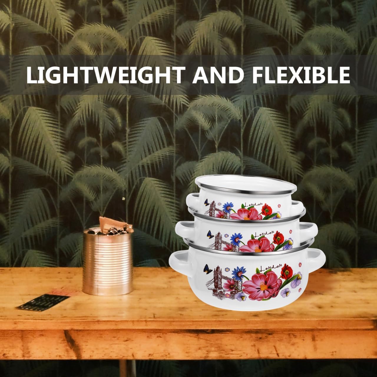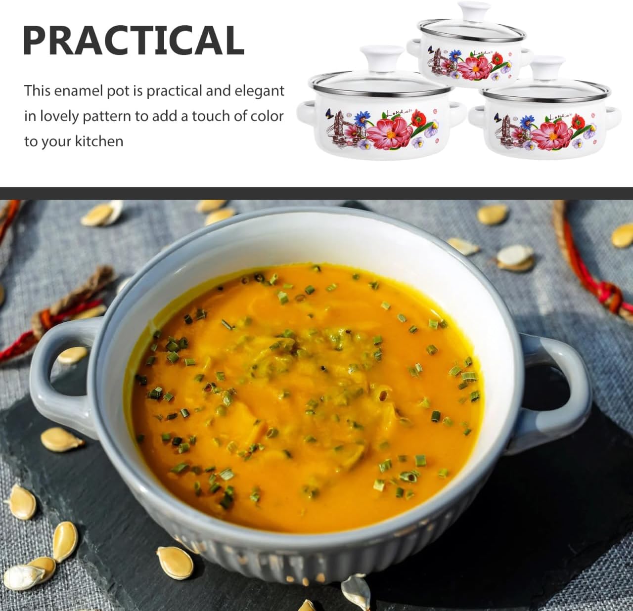 DescriptionIts compact size, measuring approximately 4.72 by 6.3 by 4.72 inches, makes it perfect for preparing soups, boiling eggs, making instant noodles, or heating milk.The double handles offer protection from high temperatures, allowing safe and convenient handling during cooking.The decorative enamel finish adds a touch of color and elegance to your kitchen, making it not only functional but visually appealing.This lightweight and flexible small saucepan is practical for everyday use, including family meals, holiday gatherings, or quick meal preparations.Please note, this enamel pot is not compatible with gas stoves.EnhanceFeatures-Color:Assorted Color-Material:Enamel-Size:20.50X16.00X12.00cm(L)-Size:18.00X14.00X11.00cm(M)-Size:15.00X12.00X9.00cm(S)【Enamel Soup Pot】Enamel Stock Pot with Lid, Retro Flower Stew Bean Cooking Pots Enamelware Pasta Pots, Flat Bottom Soup Pot with Dural Handle for Induction Cookers Gas Stove. The Cooking Pot Heats up Quickly and Dissipates Heat Well, Perfect for When You Want to Boil Milk, Boil Eggs or Hot Soup. Also, Great for Making Coffee and Oatmeal.【Chinese Milk Pot】 Enamel Soup Pot Decorative Enamel Stockpot Double Handles Soup Pot Flat Bottom Stockpot. Lightweight and Flexible, a Must-have for Mothers, One-handed Operation, Simple and Convenient.【Stockpot Simmer Pot】Enamel Stock Pot with Lid, Floral Retro Cooking Pot for Stove Non Stick Soup Pot, Induction Pasta Pot. The Two Handles Protect Your Hands from High Temperature. You Can Use It with Confidence.【Floral Enamel Pot】Stockpot Features Snug-fitting Lid to Seal in Heat and Moisture and Keep Foods Flavorful and Moist. Suitable for Electric Stoves, Induction Stoves, Small Size, Can Not Be Put into Gas Stoves.【Vintage Soup Pots with Lids】Flower Enamel Stock Pot with Lid Large Cooking Pot Flat Bottom Stew Pot for Soup, Stew, Canning. This Enamel Pot Is Practical and Elegant in Lovely Pattern to Add a Touch of Color to Your Kitchen.Package IncludingEnamel Stock