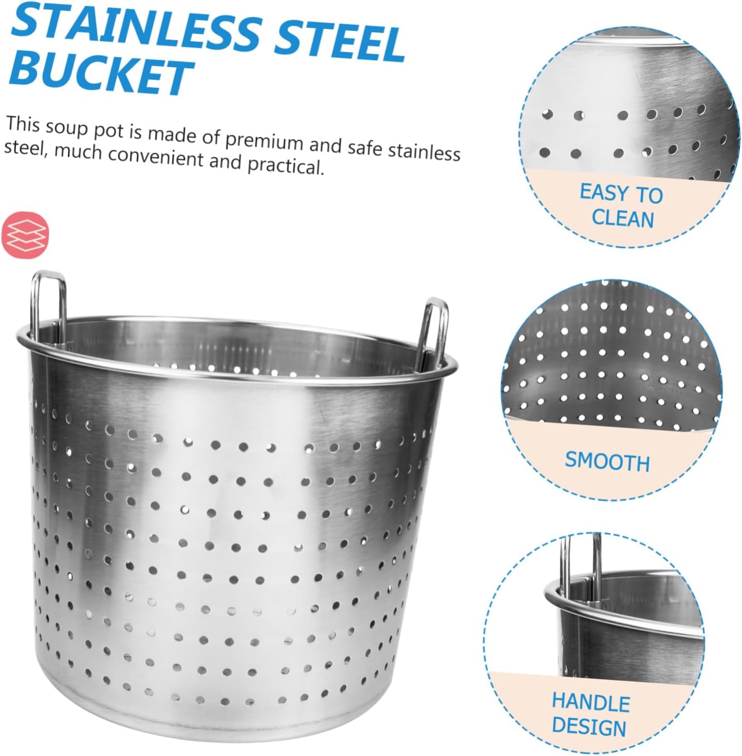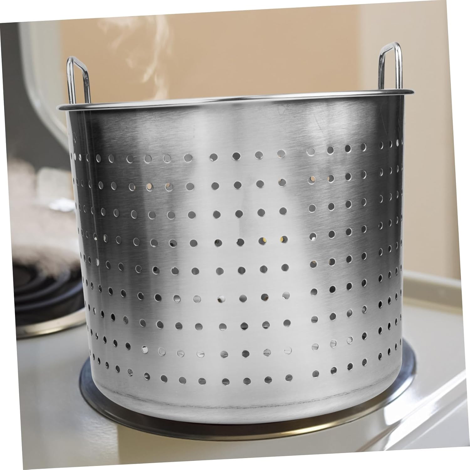 DescriptionSeafood boiling pot insert stainless steel stock pot basket perforated strainer basket crawfish cooker cooking pasta pot stew pot simmering potFeatures-Material:Stainless Steel-Size:28 X28 X23 cm/11 X11 X9.04in-Color:SilverPackage Including1 x Pot