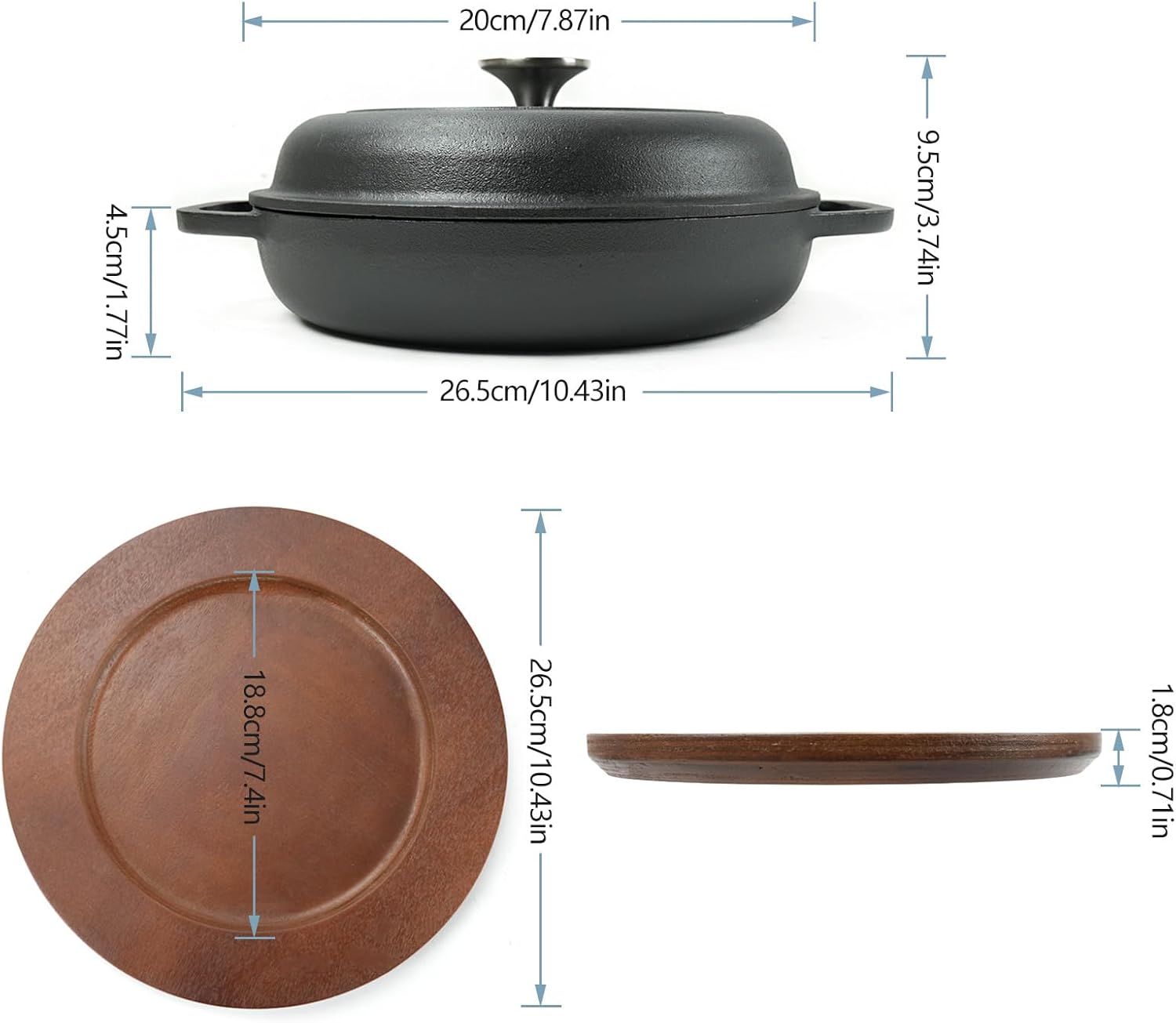 Elevate your kitchen with this elegant cast iron cookware. HAWOK cast iron casserole braiser pan is versatile, ideal for braises, stews, and sauces, making it a classic tool for every kitchen. It ensures even heat distribution and retains heat for prolonged periods, keeping food warm for hours. The heavy lid of this cast iron braiser can circulate steam and return moisture back to the food. Our cast iron pans offer a wide cooking surface, allowing you to cook multiple ingredients simultaneously without overcrowding. Each HAWOK braiser comes with a wooden underliner. By using this underliner, you not only enhance the presentation of your dishes but also protect your tabletops and surfaces.